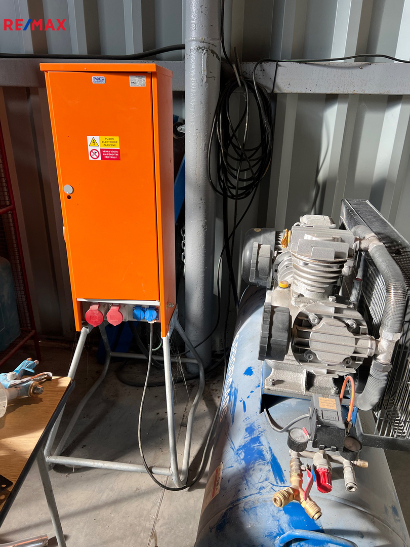 opláštěny trapezovým plechem. Vstup je sekčními vraty. Jedná se o nezateplený objekt, s podlahou z drátkobetonu.
