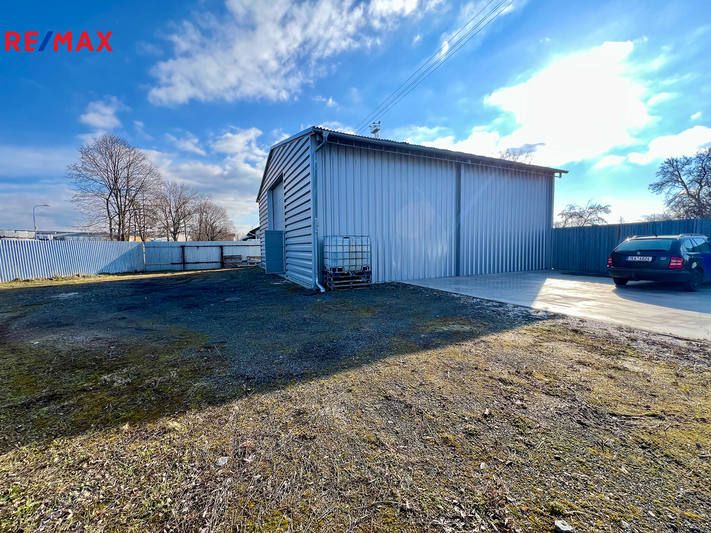 Jedná se o oplocený pozemek s posuvnou vjezdovou bránou.