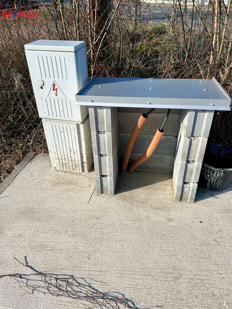 Na pozemek je nyní zavedena el.přípojka zemním kabelem - el. skříň je na