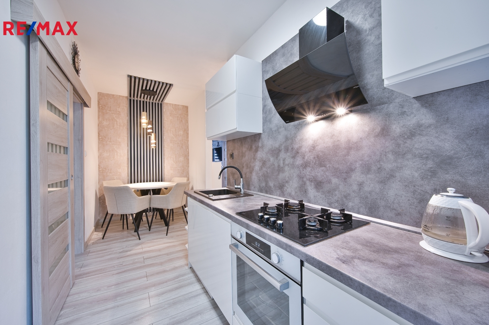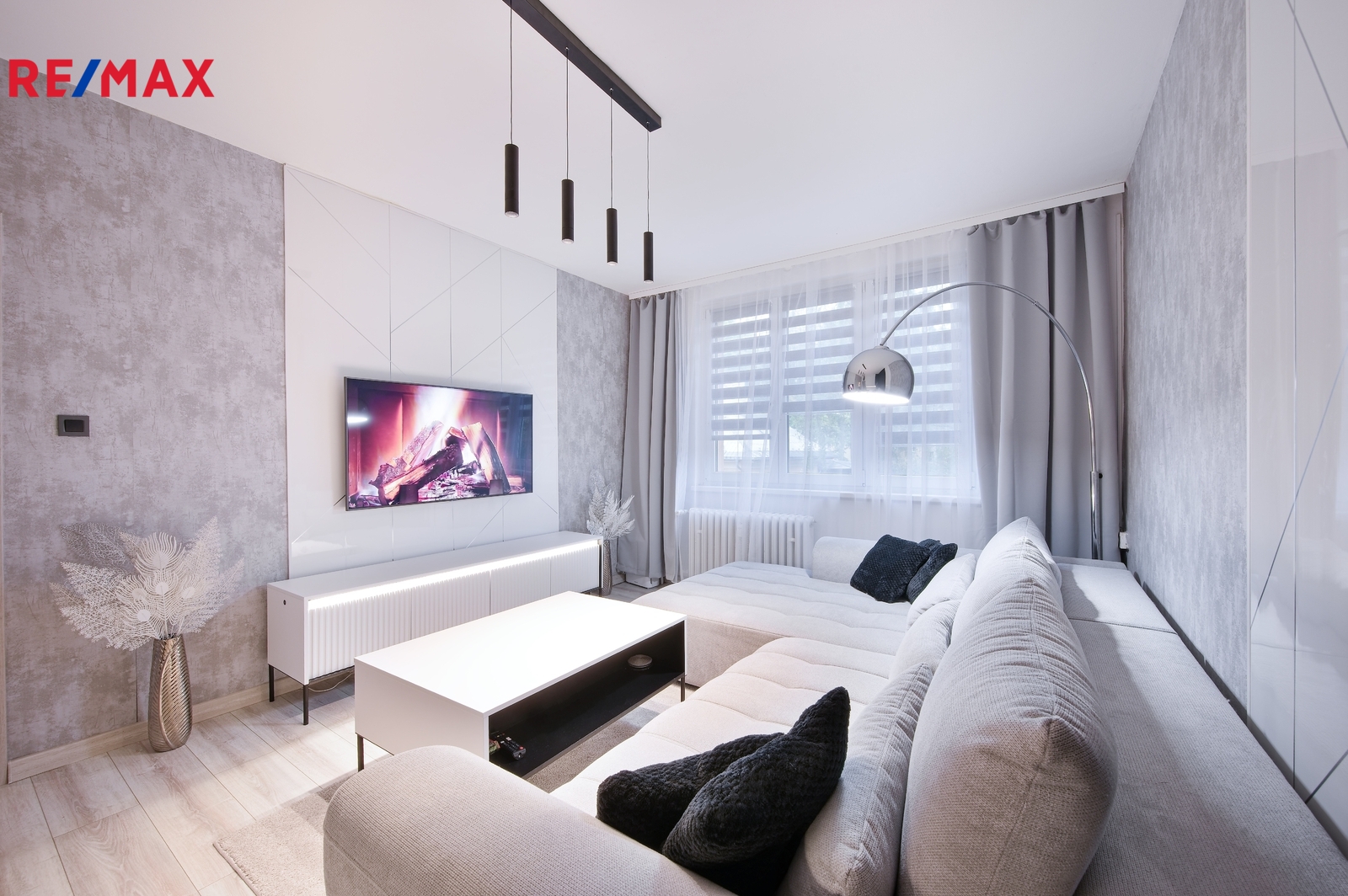 Ve výhradním zastoupení nabízíme krásný byt s dispozicí 3+1 a lodžií v osobním vlastnictví, který se nachází v 4.NP (3.patře) panelového domu o 4. podlaží bez výtahu. Byt je po krásné kompletní rekonstrukci od podlahy po strop. Celý byt je nádherně jednotně designově sladěn. Zděné jádro, nové rozvody elektřiny a vody. Plastová okna jsou samozřejmostí. Byt je velmi teplý, nízkonákladový v panelovém domě, který je po rekonstrukci fasády střechy a vnitřních prostor. K dispozici je sušárna sklep či kočárkárna.
