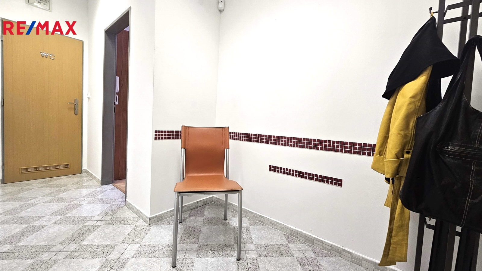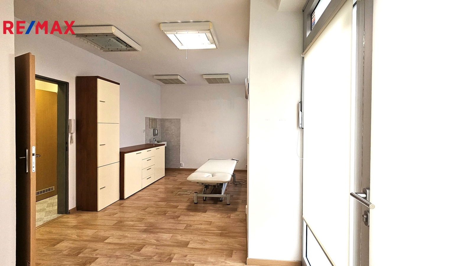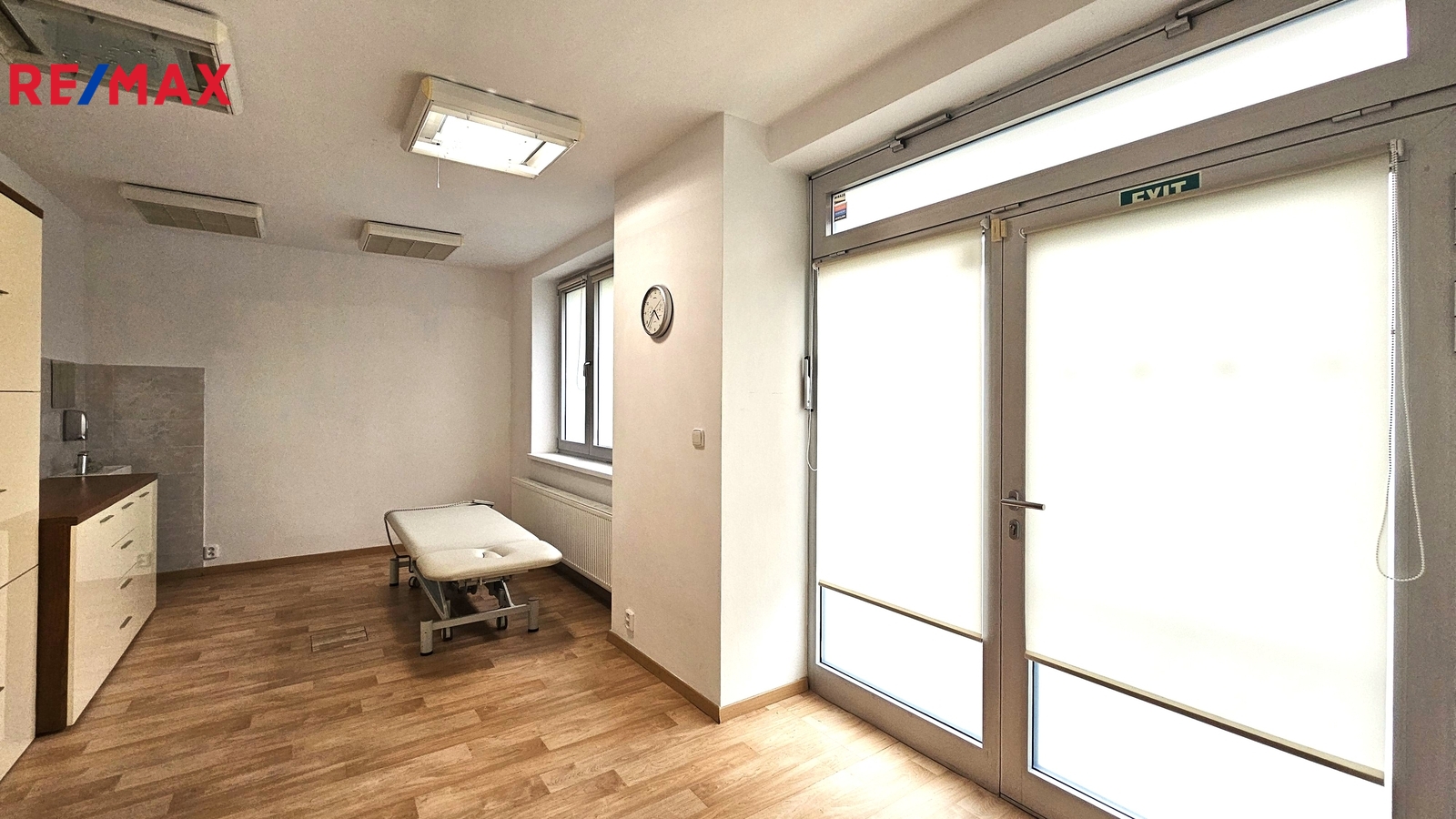 Jednotka má dva vchody, jeden z ulice, druhý z vnitřku domu a je velmi prakticky provedená. Sestává z prostorné předsíně, samostatné místnosti, kde je nyní umyvadlo, je možné zde udělat kuchyňský kout a samostatné toalety s umyvadlem a sprchou. Jednotka je hezky prosvětlená, díky velkým oknům a skleněným dveřím. Na oknech i dveřích je kromě rolety i diskrétní fólie, díky které do jednotky z klidné ulice není vidět.