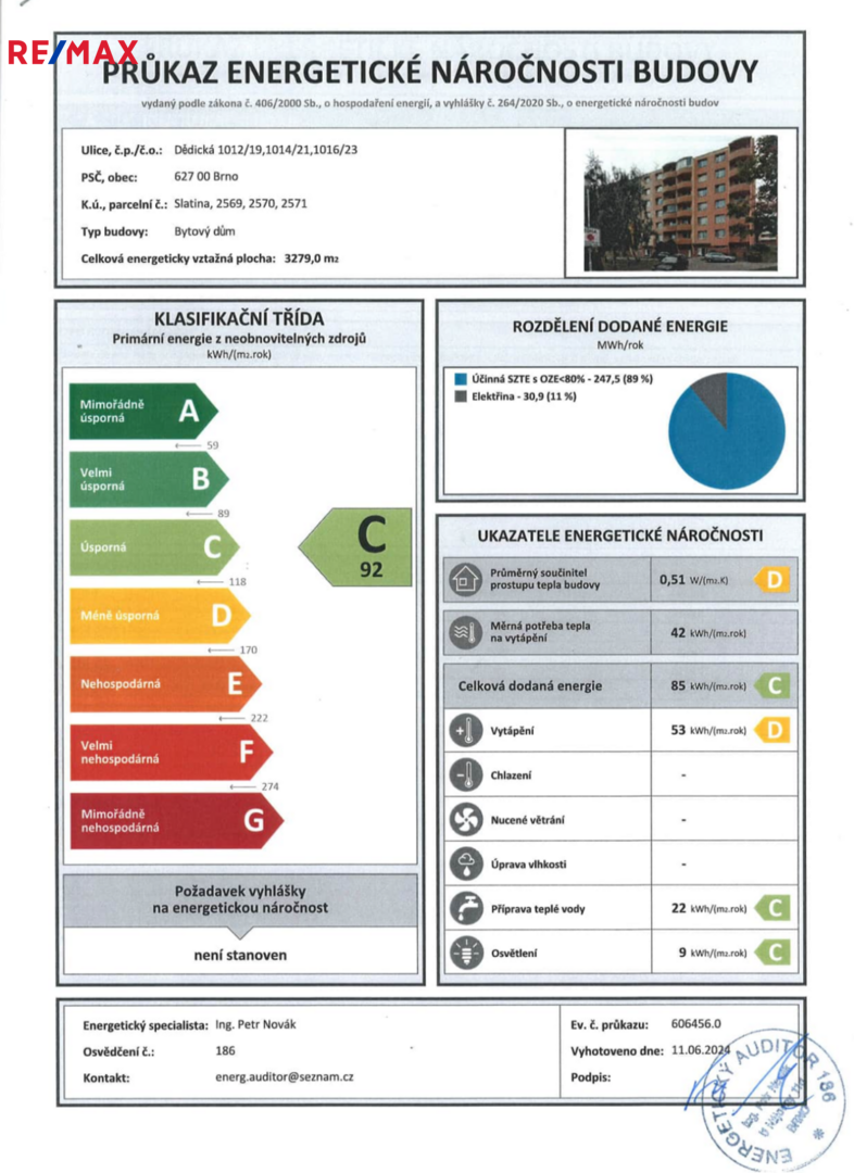 Energetická náročnost budovy uvádí třídu C – úsporná.