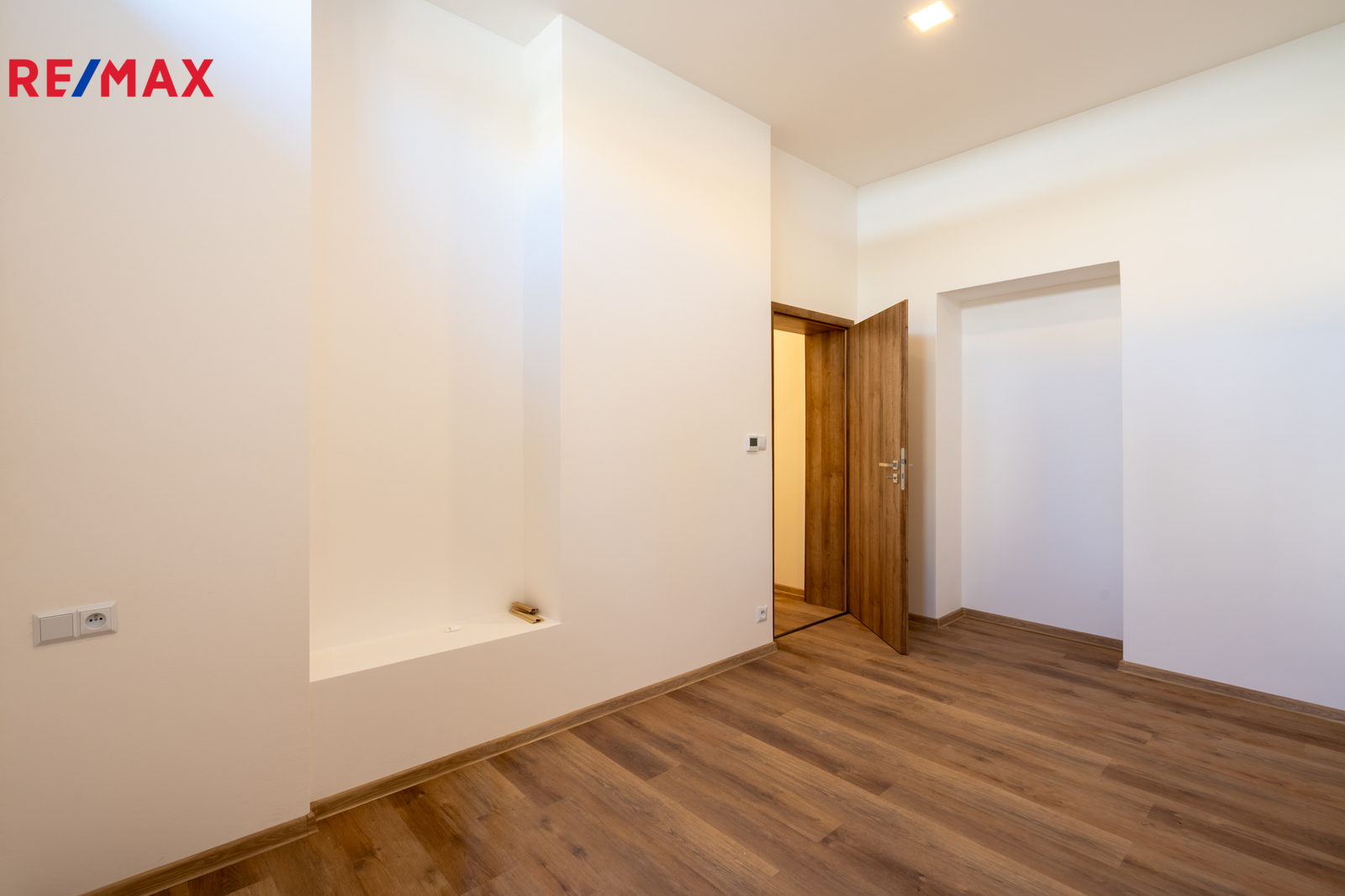V rámci kompletní rekonstrukce byla provedena nová elektroinstalace, podlahové elektrické vytápění s individuální regulací, omítky, podhledy s vyššími stropy, na podlahách vinyl.