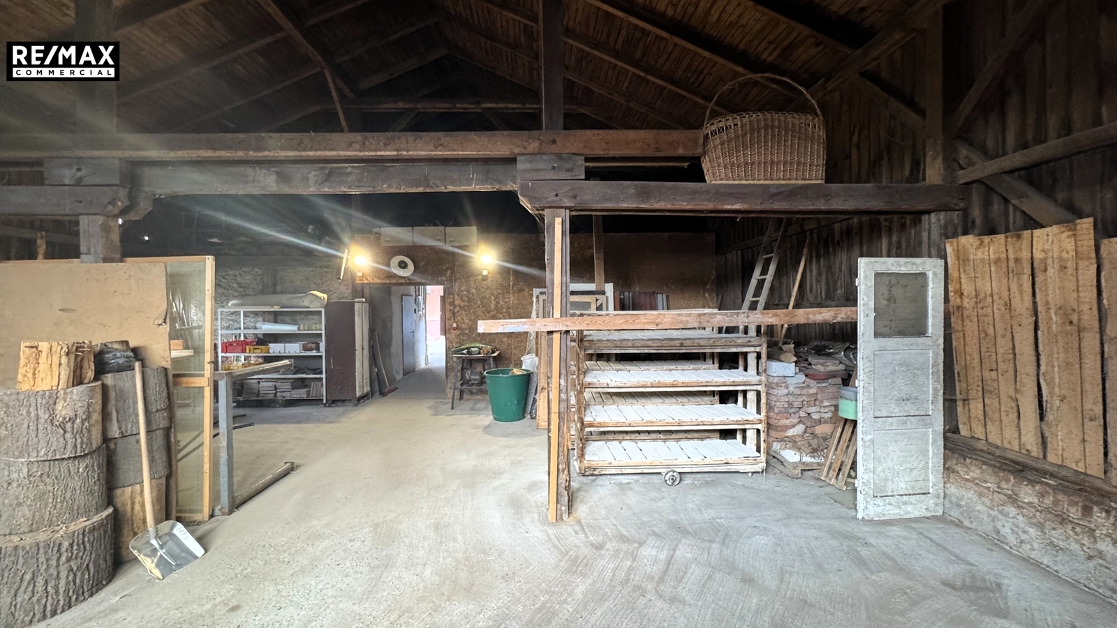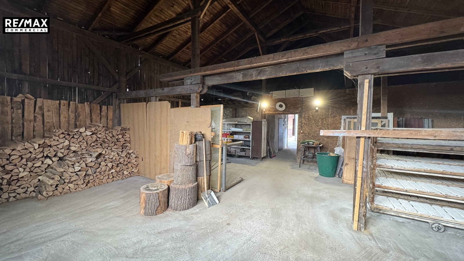 Celková plocha prostor činí cca 159 m² a zahrnuje také sociální zázemí, kancelář. Součástí je pronájmu je také zhruba polovina dřevěné kůlny využívaná převážně na uskladnění dřeva.