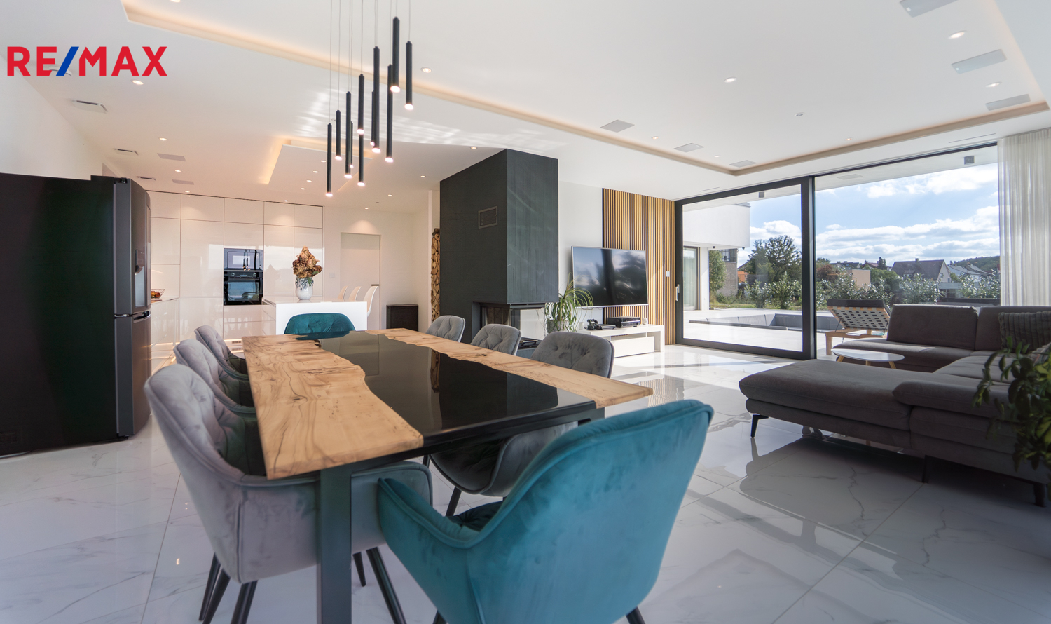 Tato vila není jen domem – je osobitým prostorem pro život, který spojuje luxusní komfort, přírodu a nadčasový design.