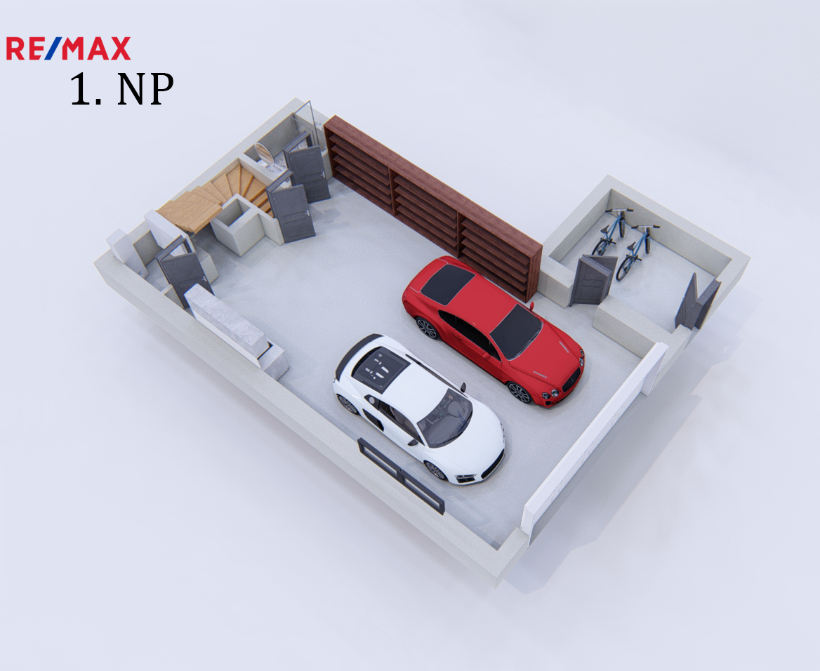 Na úrovni příjezdu se nachází suterén s garáží pro 4 vozy, koupelnou, skladem a technickou místností. I tato část domu je řešena s důrazem na komfort a praktické využití.