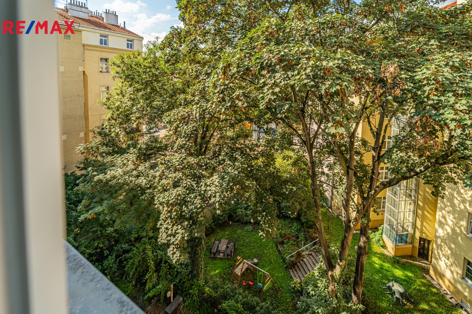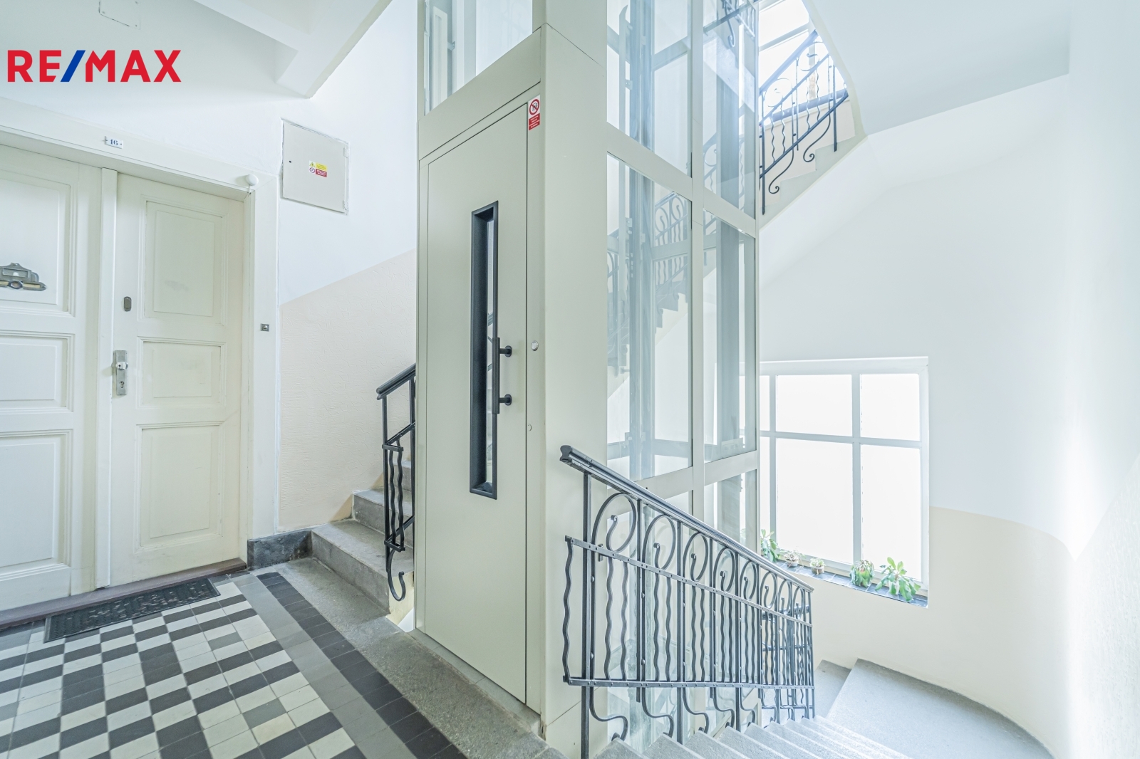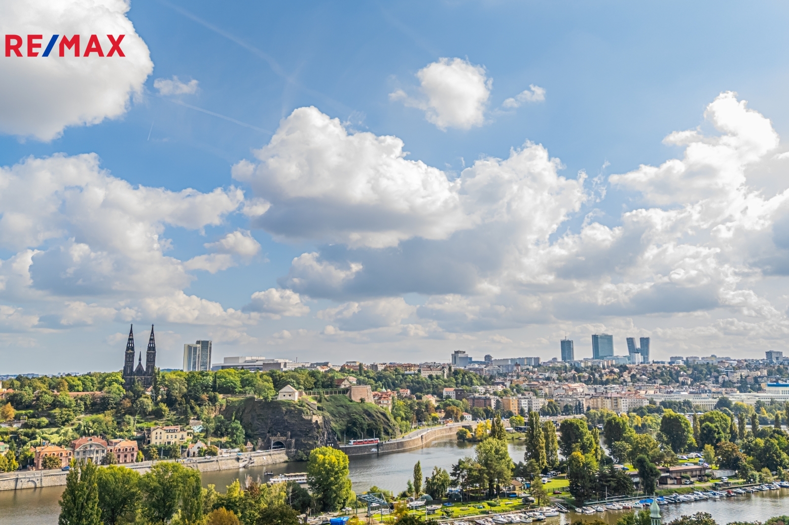 Bytová jednotka v osobním vlastnictví prošla v r. 2018 kompletní, ale velmi citlivou rekonstrukcí s důrazem na zachování ducha nemovitosti a zároveň na propojení původních prvků s moderním bydlením. Renovace dřevěných parketových podlah, interiérových dveří s obložkovými zárubněmi z masivního dřeva, nová avšak dobová dřevěná špaletová okna včetně kování s izolačním trojsklem - vše doplněno moderní kuchyňskou linkou s vestavnými spotřebiči, luxusní koupelnou či klimatizací. Obývací pokoj s kuchyní je orientován na východ s výhledem na Vltavu a Vyšehrad. Okna ložnic pak na západ, do vnitrobloku. Na první pohled Vás zaujme mnoho na míru zhotovených úložných prostor v podobně vestavných skříní, polic a šatníku, včetně průchozí šatny v ložnici. Velkou výhodou je uzavíratelná komora s regálovým systémem, kde je umístěna pračka a sušička. Technická místnost s plynovým kotlem, jenž představuje vlastní zdroj topení a ohřevu TUV je zcela oddělena.