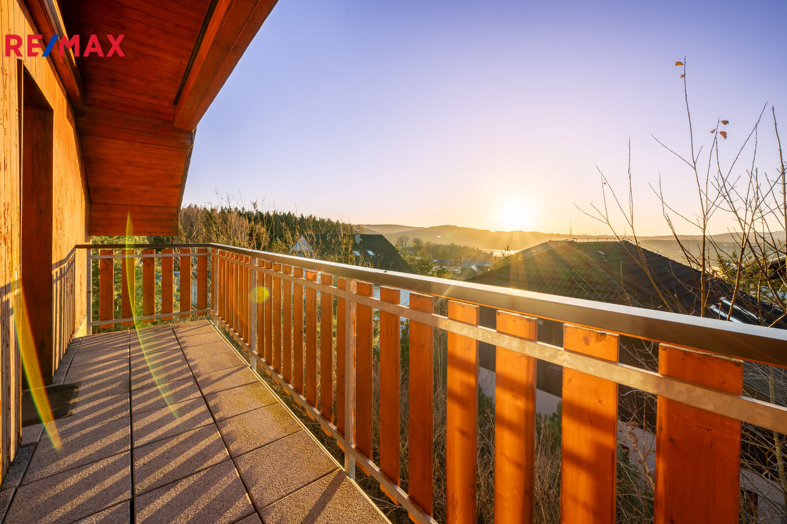 Dům se nachází v lukrativním Villa Parku, v klidné části u lesa, s krásným výhledem na vodní nádrž Lipno, vzdálenou jen 800 m.