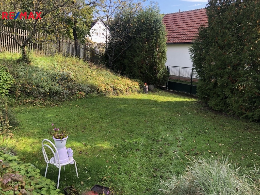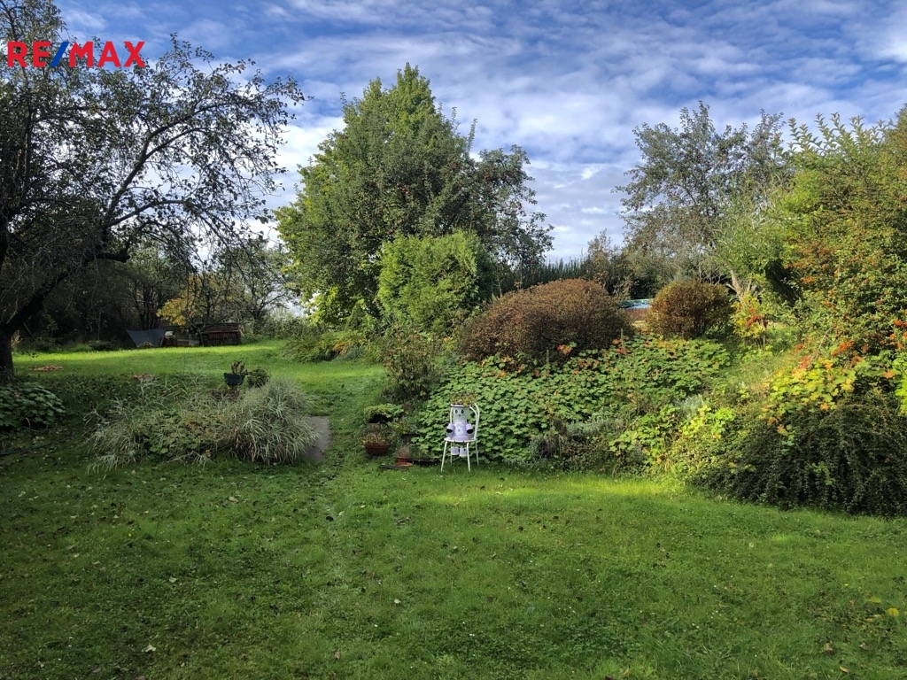 Pozemek je místní komunikací rozdělen na dvě části: 250 m2, která je zastavěna stavbou chalupy a samostatné zděné kolny (25,89 m2), sloužící jako sklad zahradní techniky a nářadí. Druhá část o výměře 973 m2 slouží jako užitná a odpočinková zahrada, ovšem dle platného znění Územního plánu se jedná o parcelu zastavitelnou rodinným domem. Nechybí zde nadzemní bazén velikosti 3x7 m2 vybavený pískovou filtrací vody a vyhřívaný solárním panelem a tepelným čerpadlem systému vzduch-voda. Na zahradě se nachází 9 m hluboká studna, využívaná k zálivce a dopouštění bazénu a vývod elektroinstalace.