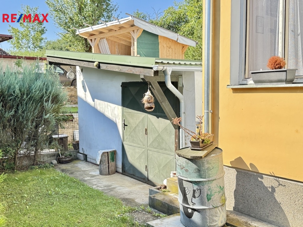 Pozemek o celkové výměře 250 m2 je zastavěn stavbou chalupy a samostatné zděné kolny (25,89 m2), sloužící jako sklad zahradní techniky a nářadí.