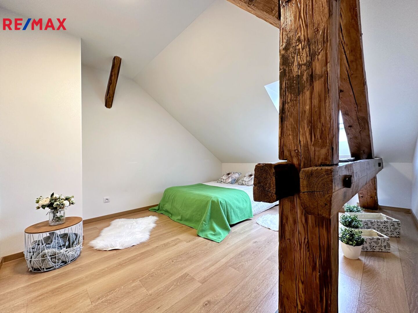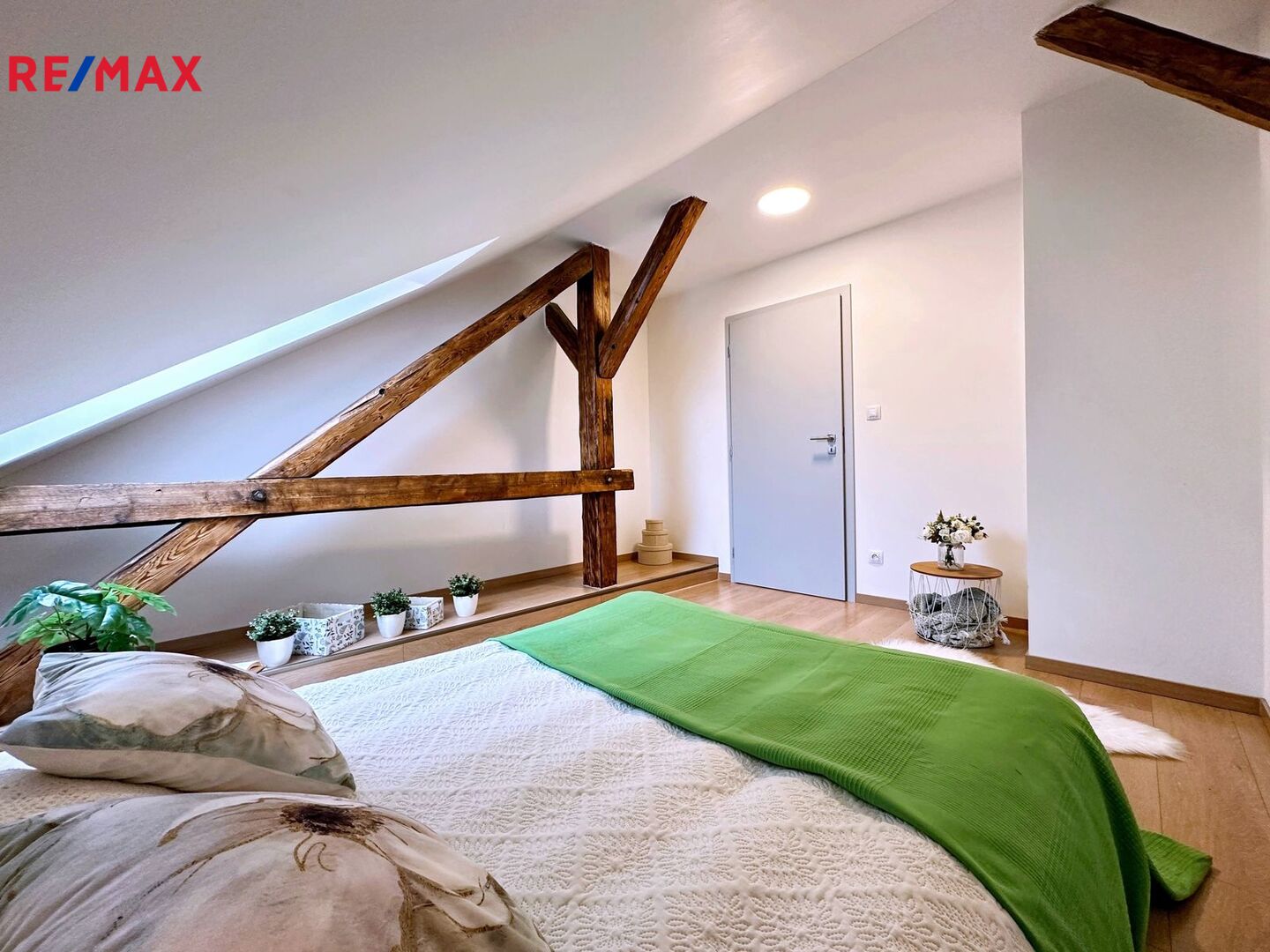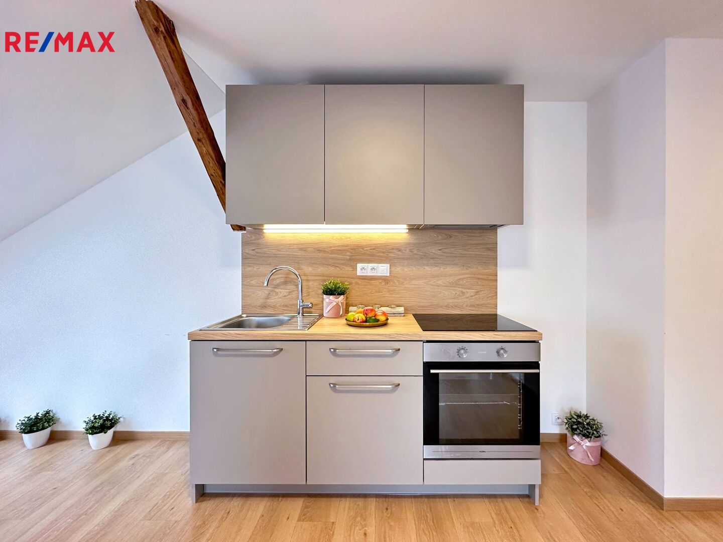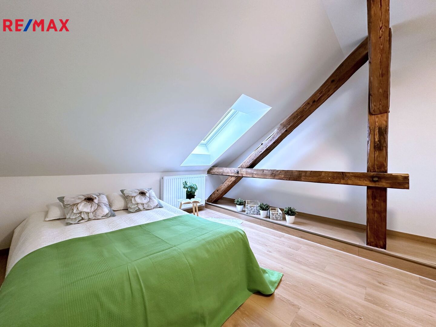 Celková podlahová plocha bytu je přibližně 60 m2. Podkrovní bytová jednotka se skládá z obytného pokoje s kuchyňským koutem, ložnice, koupelny s WC a předsíně. Byt se nabízí nezařízený, v kuchyni je kuchyňská linka s indukční deskou.