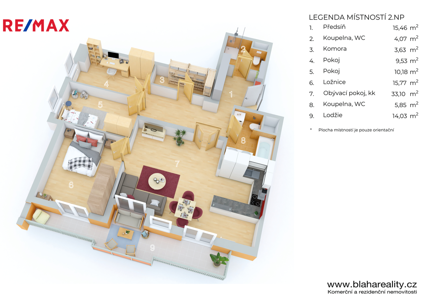 Dispozice 4+kk s prostornou lodžií ve 4. patře moderního pětipatrového domu a třemi parkovacími stáními nabízejí maximální prostor a soukromí. Obývací pokoj s kuchyní a jídelnou, ložnice, dva samostatné pokoje, prostorná chodba s vestavěnou skříní a praktická komora tvoří promyšlené a pohodlné uspořádání interiéru. K dispozici jsou dvě koupelny – jedna s vanou, druhá se sprchovým koutem, obě vybavené toaletou.