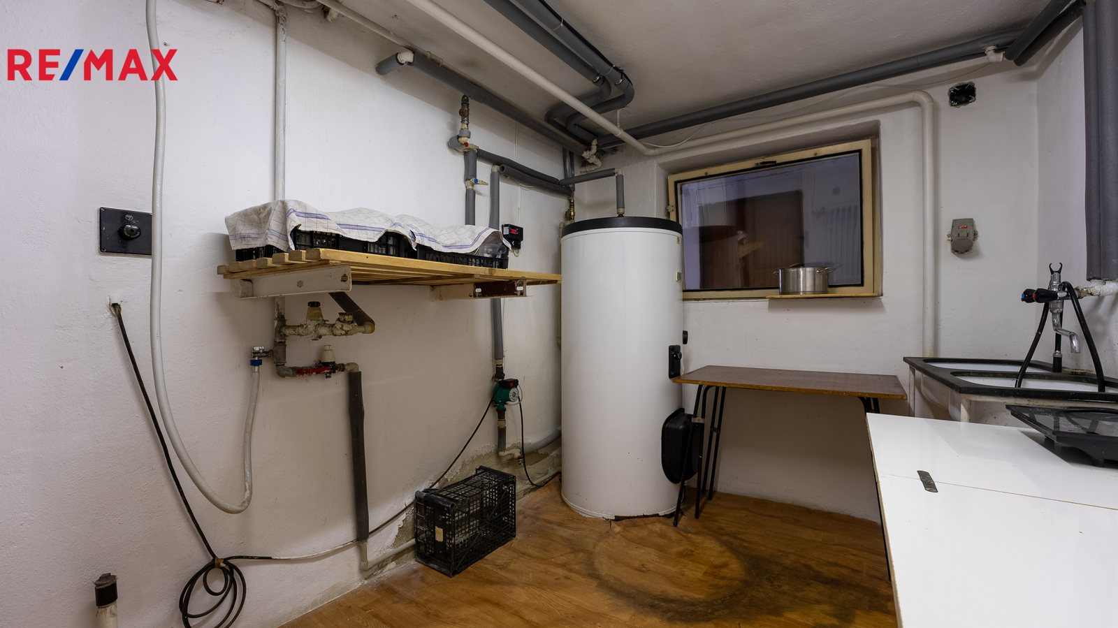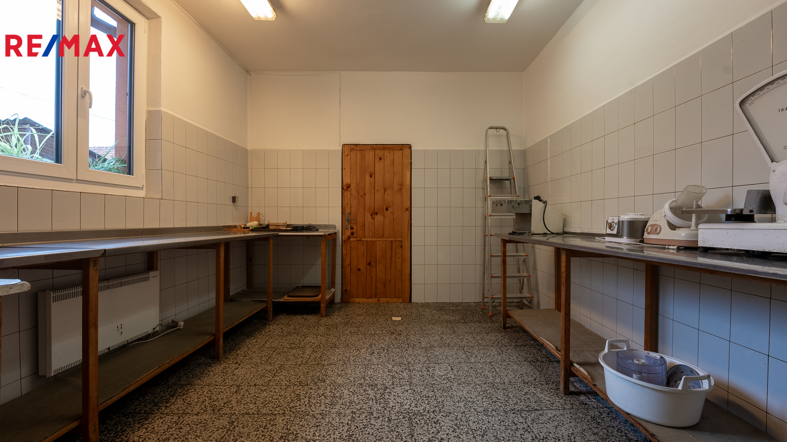 V suterénu domu jde nachází bývalá výrobna studené kuchyně se sklady, umývárnou a technickou místností.