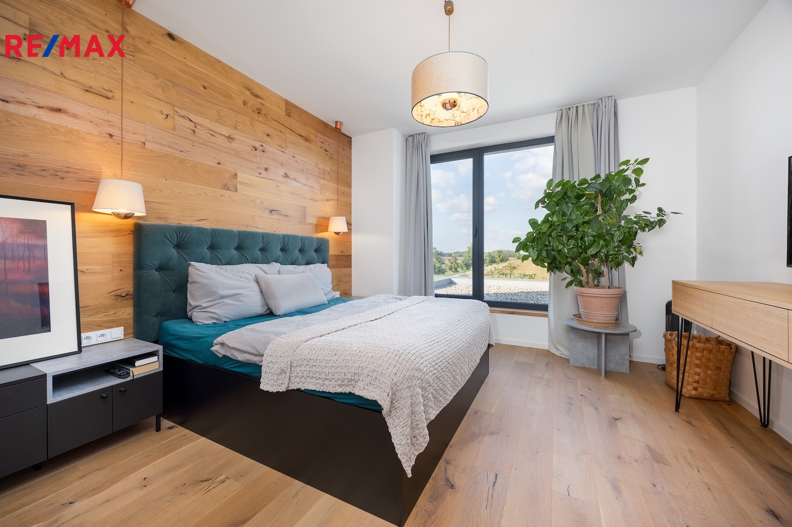2. NP disponuje dvěma dětskými pokoji, hlavní ložnicí s prostornou šatnou, koupelnou s vanou a samostatnou toaletou.
