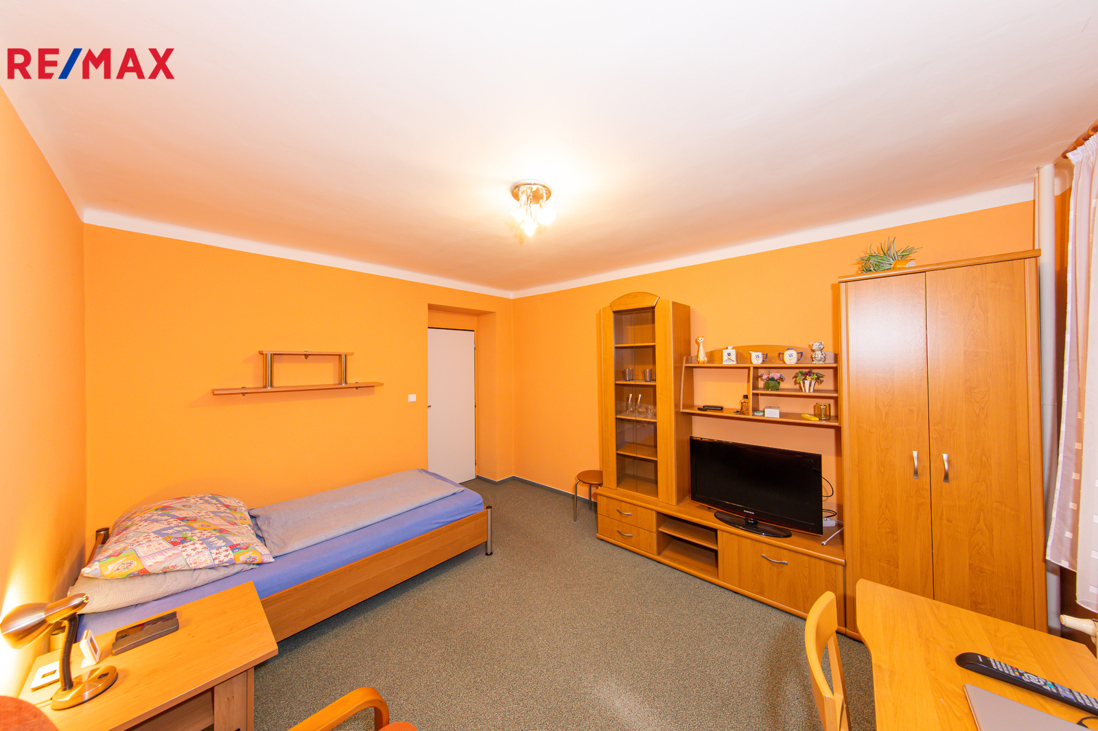 V koupelně je vana, umyvadlo, pračka. WC je samostatné. V pokoji zůstává i TV se set top boxem, k bytu náleží také satelitní přijímač.