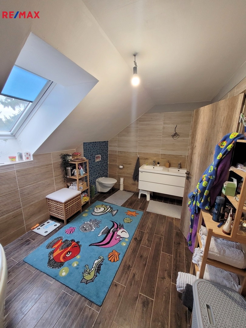 • Patro: V patře se nachází tři dětské pokoje, které poskytnou dostatek místa pro hry i učení. Prostorná koupelna s vanou a toaletou pak zajistí komfort pro celou rodinu.
