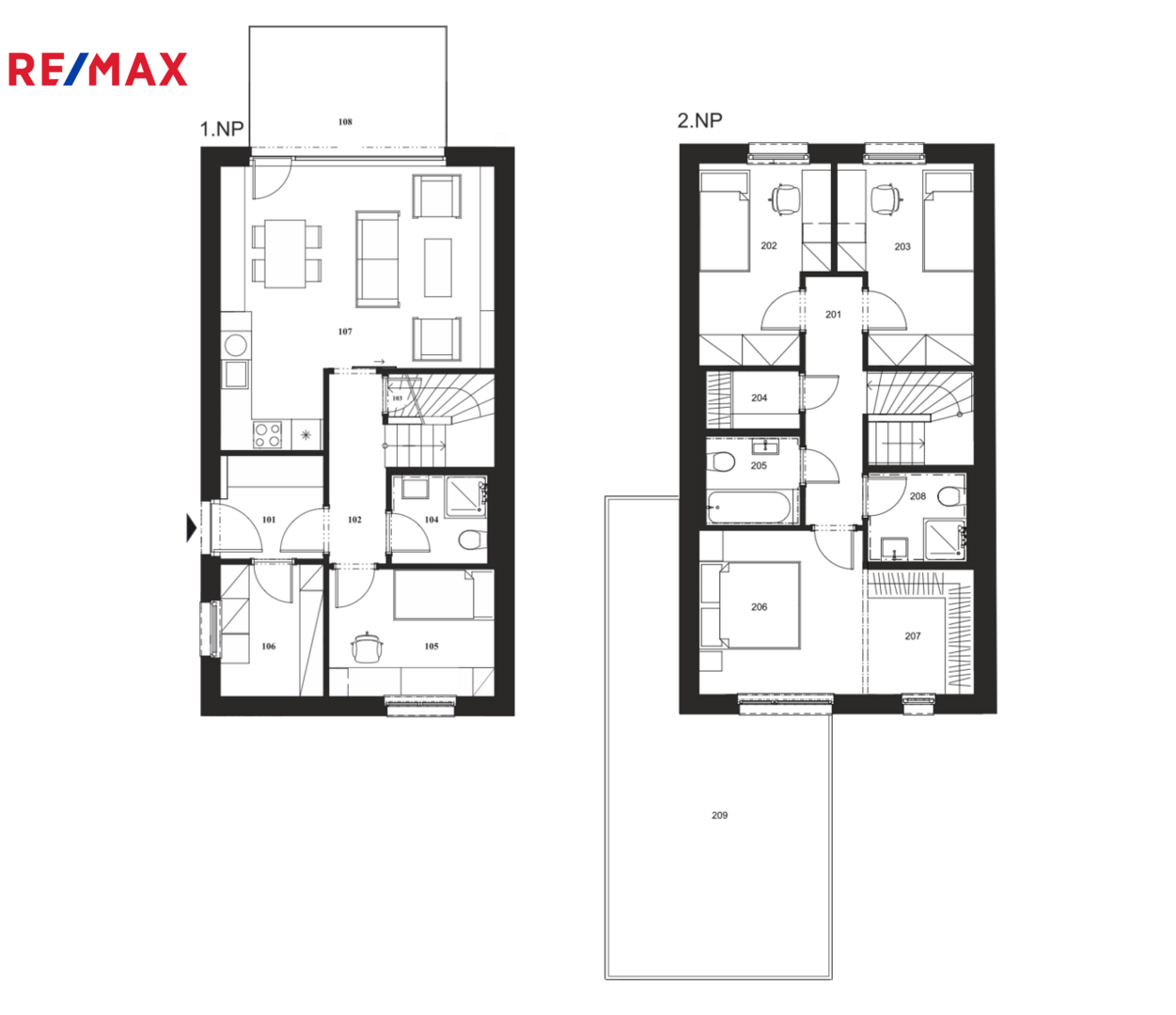 Dispozice zahrnuje v přízemí domu prostorný obývací pokoj s kuchyňským koutem, pracovnu či pokoj pro hosty, technickou místnost a koupelnu. V Prvním patře najdete tři ložnice, dvě koupelny, šatnu a venkovní terasu.