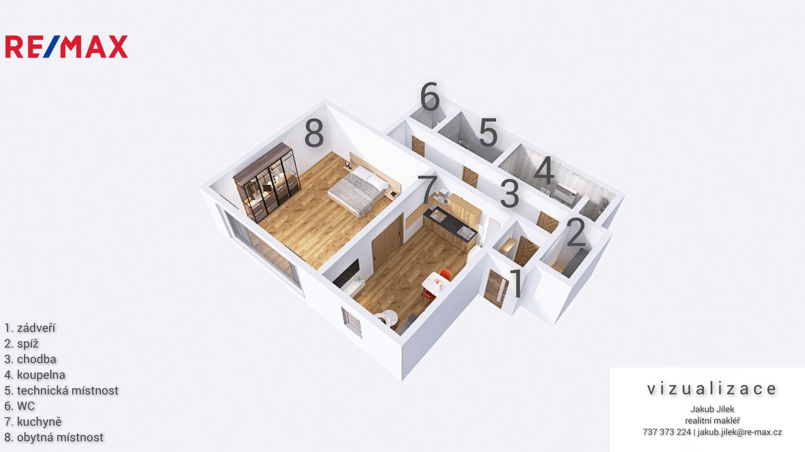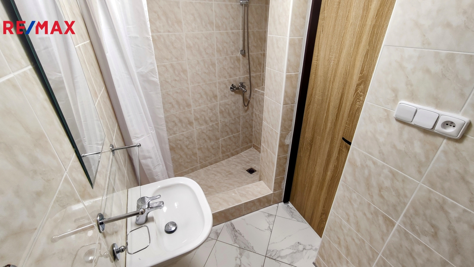 V bytě najdete oddělené WC, kuchyňskou linku vybavenou elektrickou troubou se sklokeramickou varnou deskou, digestoří, dřezem, prostorem pro lednici nebo možností připojení menší myčky nádobí. Na kuchyni navazuje prostorná obytná místnost s posuvnými dveřmi a možností připojení na vysokorychlostní internet. Koupelna je vybavena vestavným sprchovým koutem, umyvadlem se zrcadlem a žebříkovým radiátorem. Prostor pro pračku a sušičku je vymezen v oddělené technické místnosti. Vytápění je řešeno plynovým kotlem přímo v budově, který v kombinaci s bojlerem na ohřev vody zajišťuje nízké provozní náklady.
