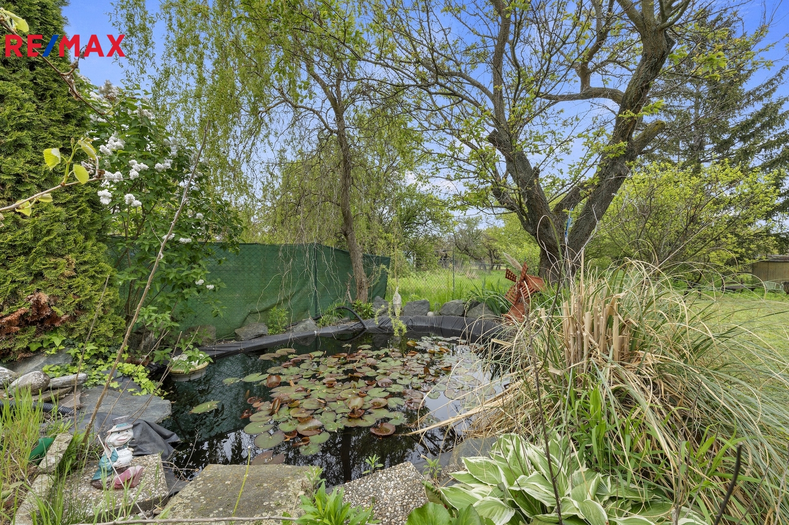 Pozemek je rovinatý, oplocený a umožňuje parkování přímo u chaty za bránou. Na zahradě se nachází venkovní posezení, bazén a okrasné jezírko, které dotváří klidnou atmosféru tohoto místa. Zdrojem vody je vrtaná studna a příjezd k chatě je možný celoročně po zpevněné cestě.