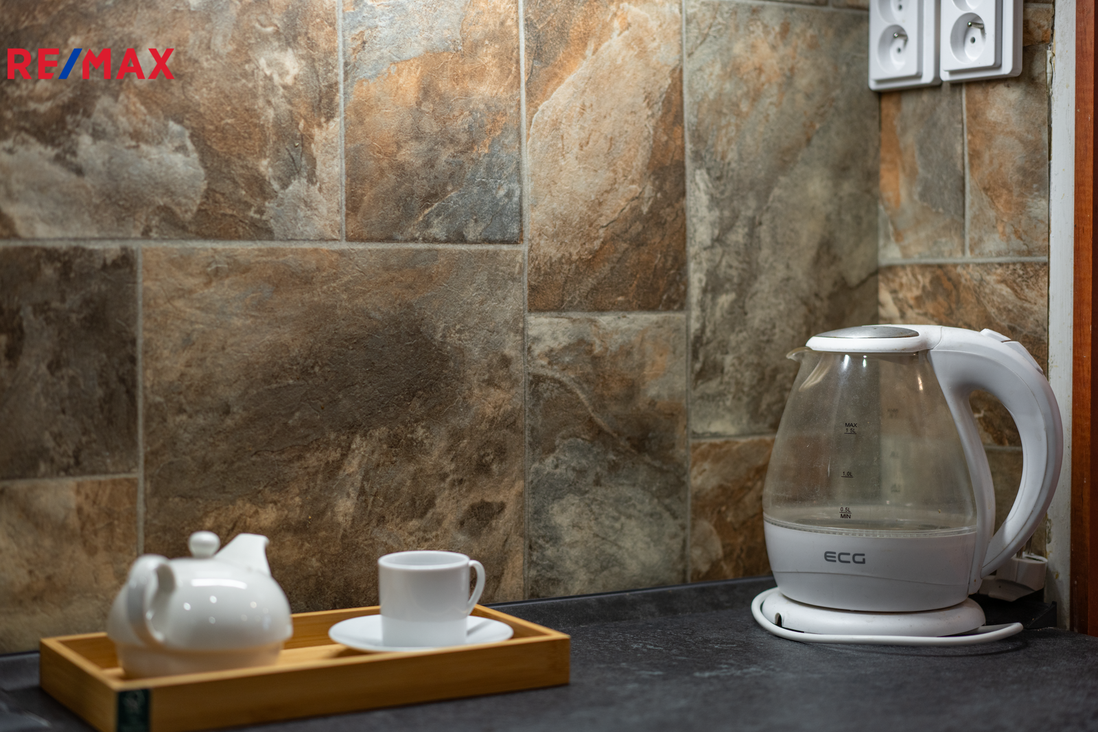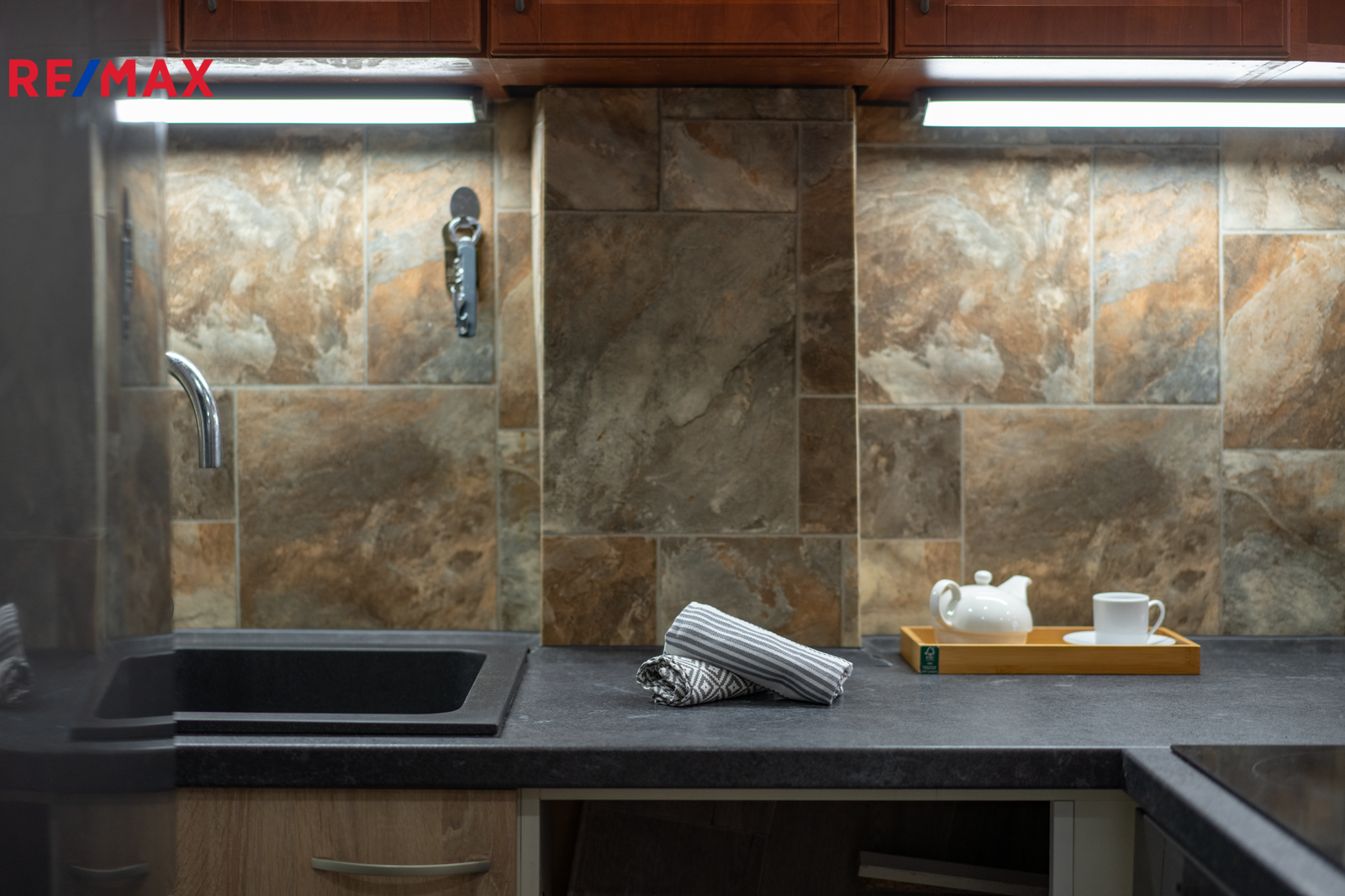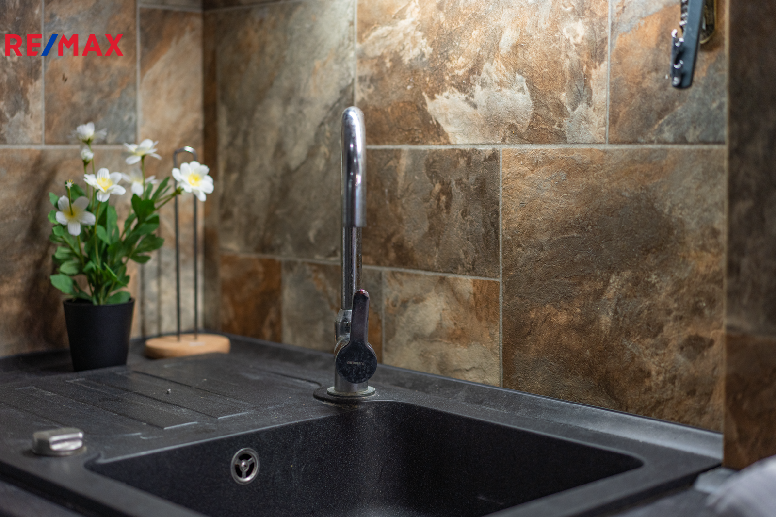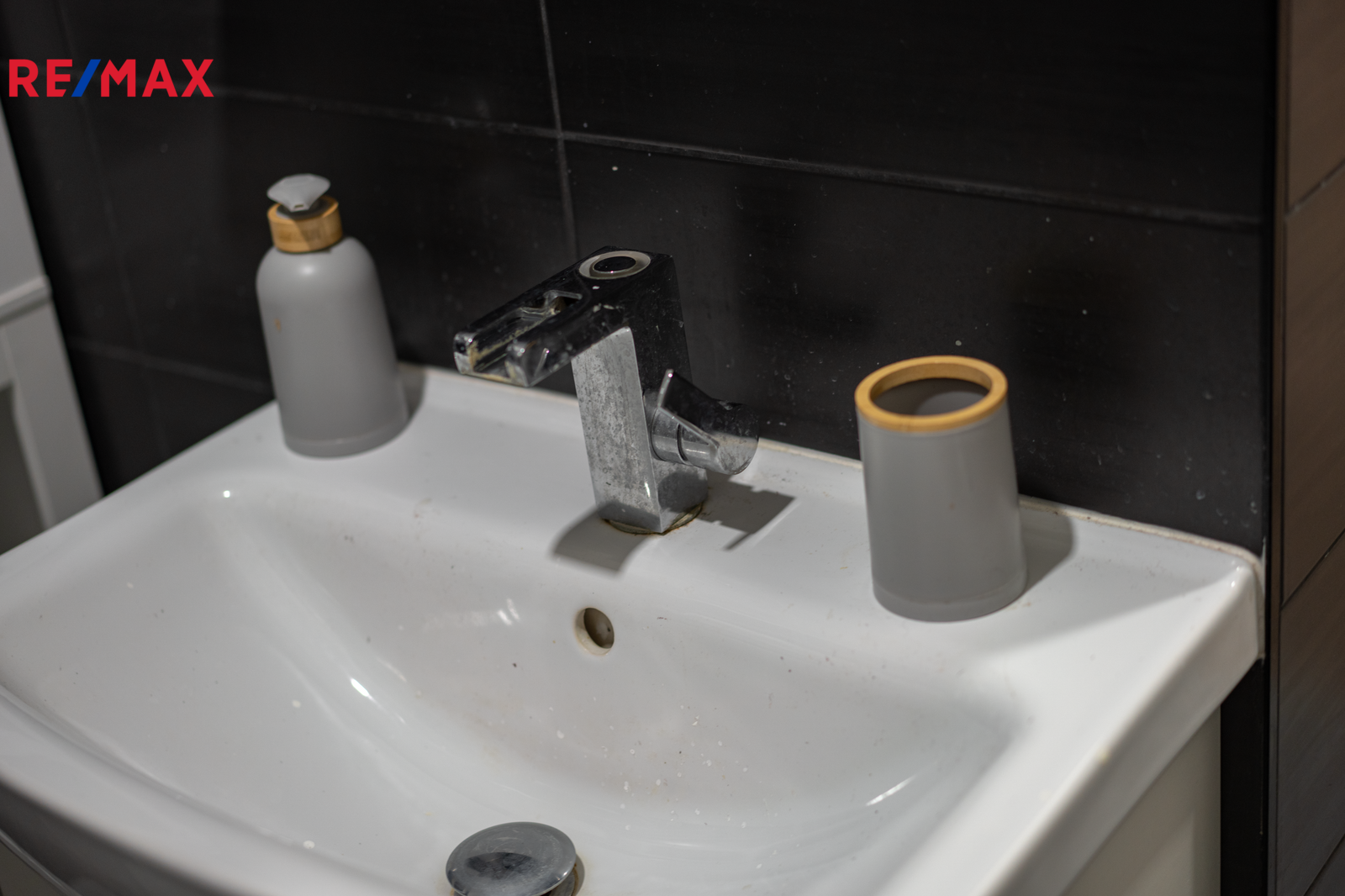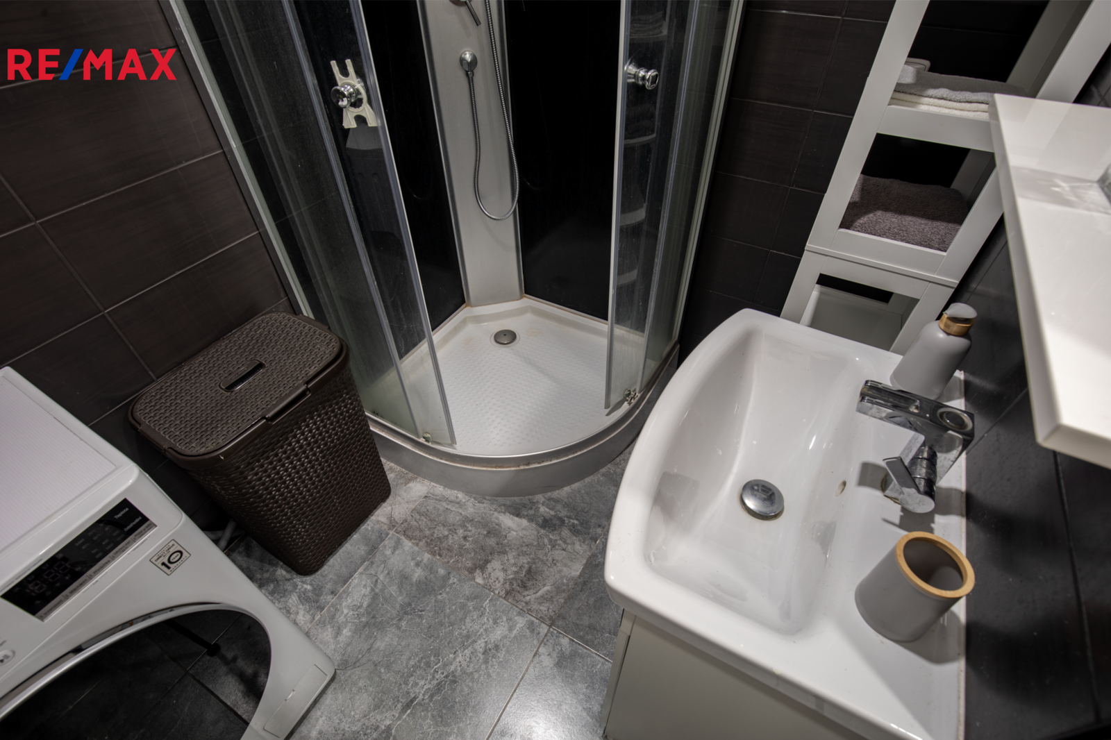 ✅ Zvětšená koupelna se sprchovým koutem, moderní obklady, dlažba, místo pro pračku ( pračka není součástí prodeje)