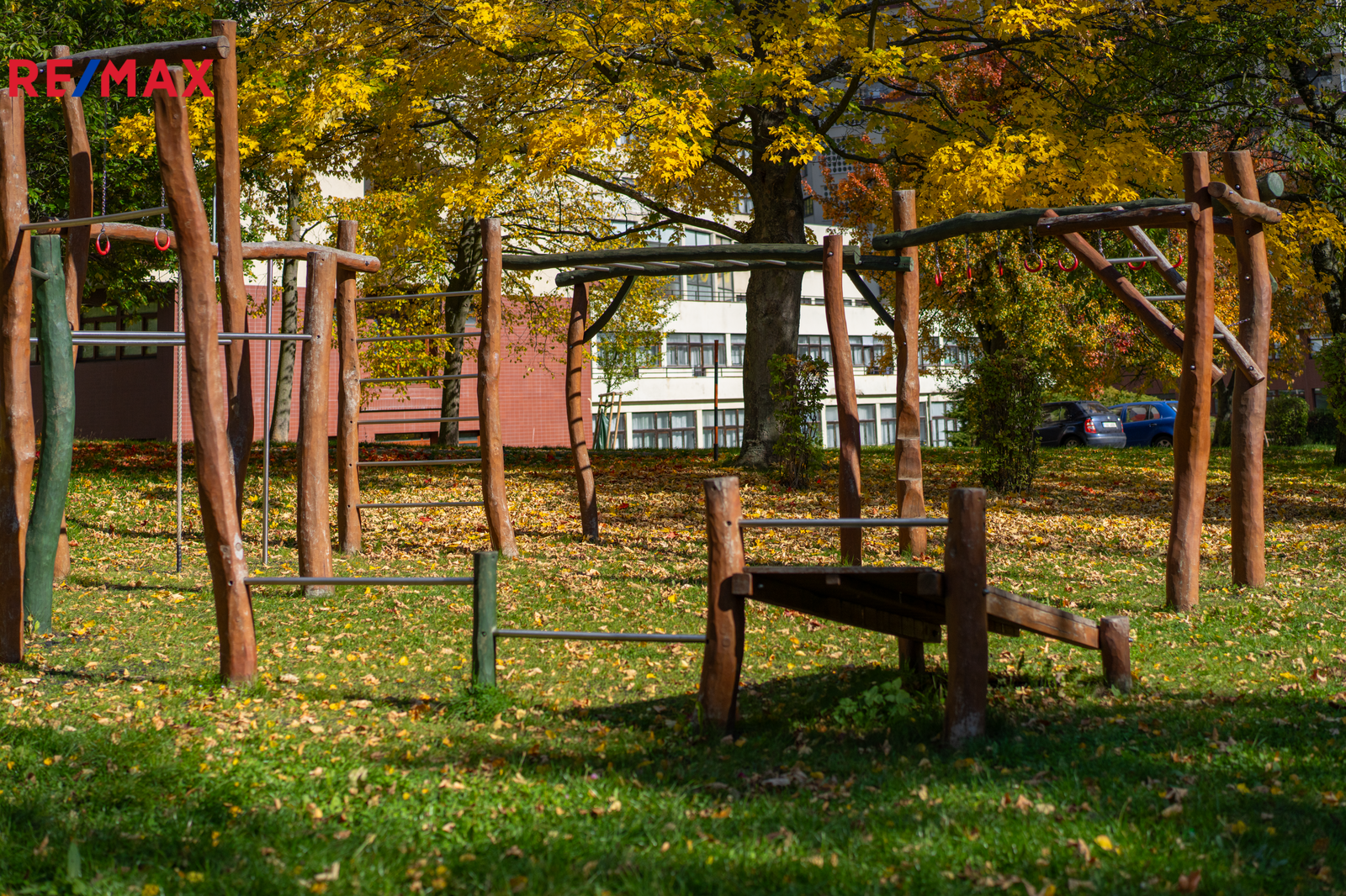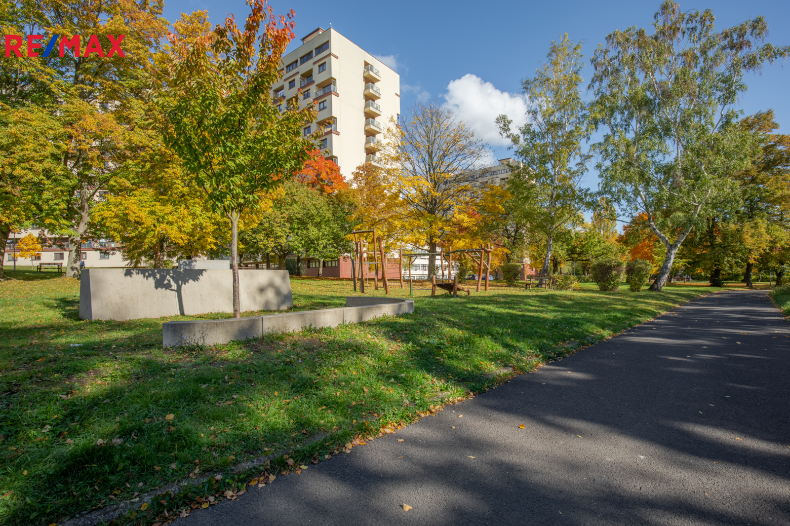 ✅ Lokalita jak z katalogu – blízkost přírody, velké parkoviště, sportovní areál, kouplaiště, dětské hřiště za domem, park s lavičkami, škola, školka, obchody, BILLA, MHD do centra města.