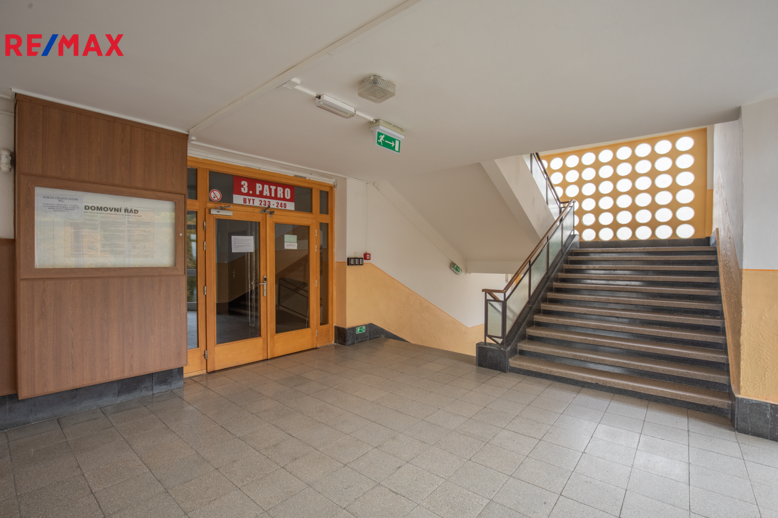 Dům – zateplení, eurookna, 4 výtahy (jeden nákladní), moderní čipový vstup a kamerový systém. Čistý a bezpečný dům udržuje úklidová firma.