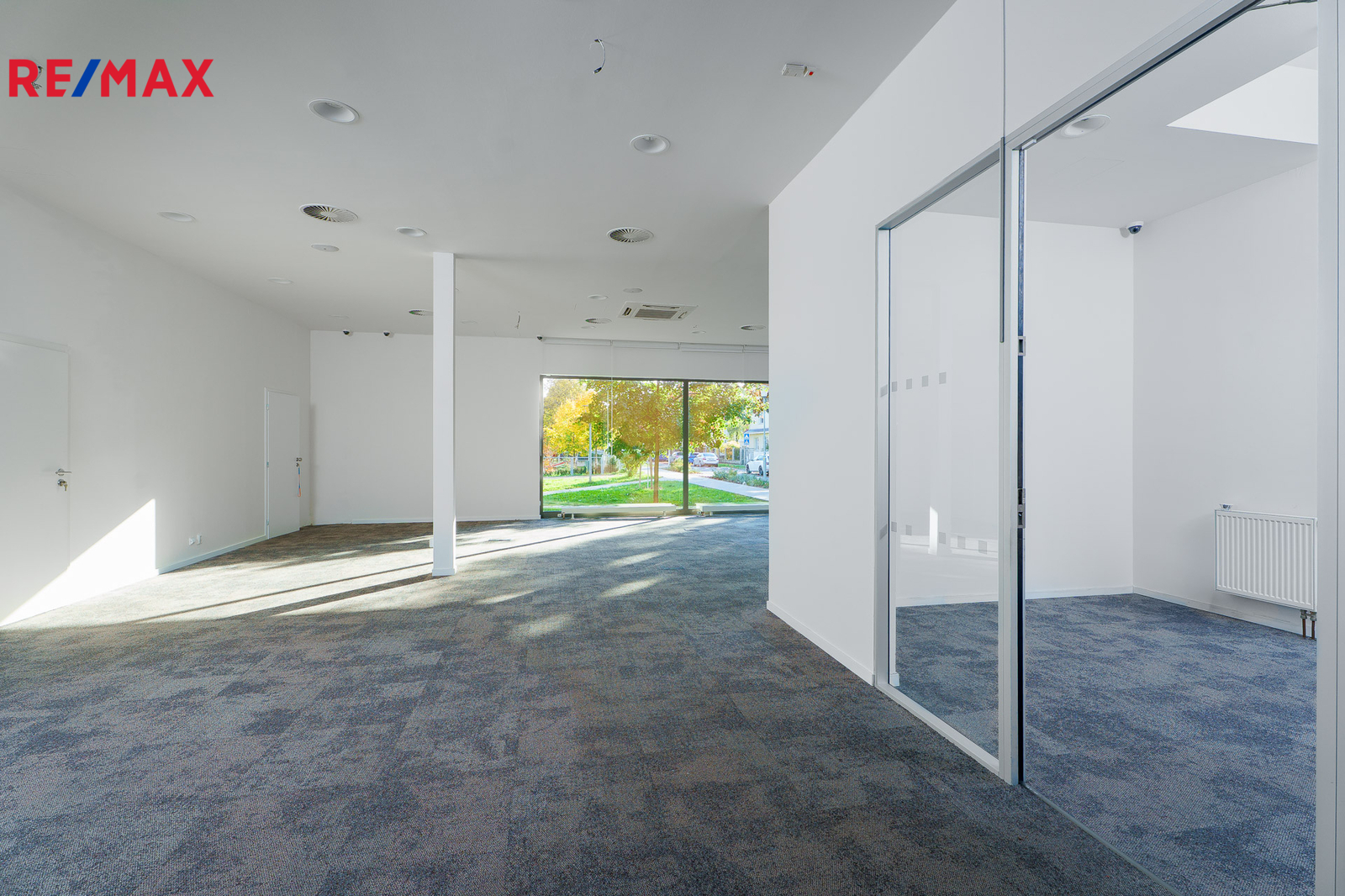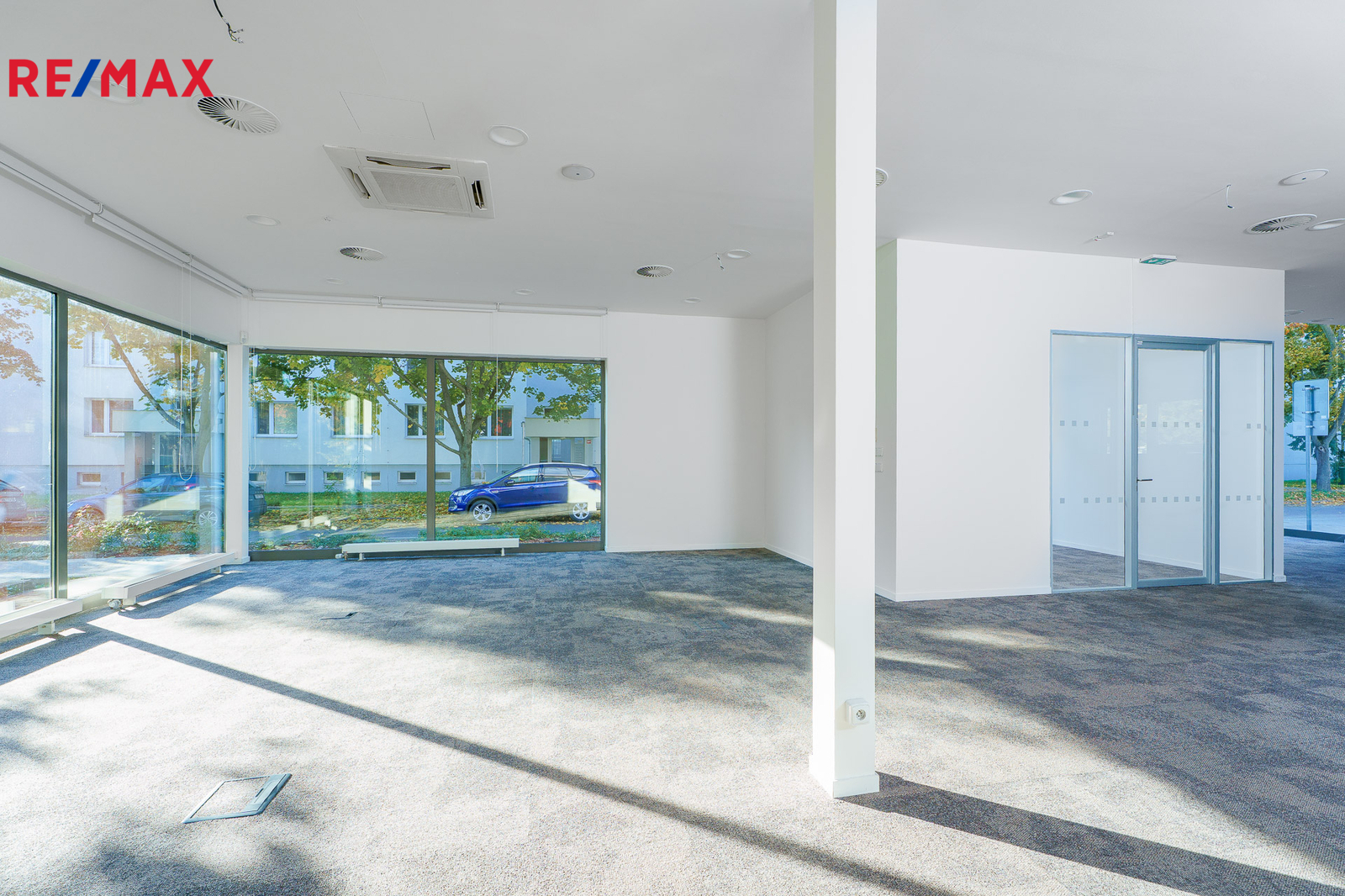 Prostor o celkové užitné ploše 155,24m² včetně zázemí je ideální pro bankovní pobočku či podobně orientované využití, showroom nebo obchodní místo a můžete si jej přizpůsobit vašim potřebám.