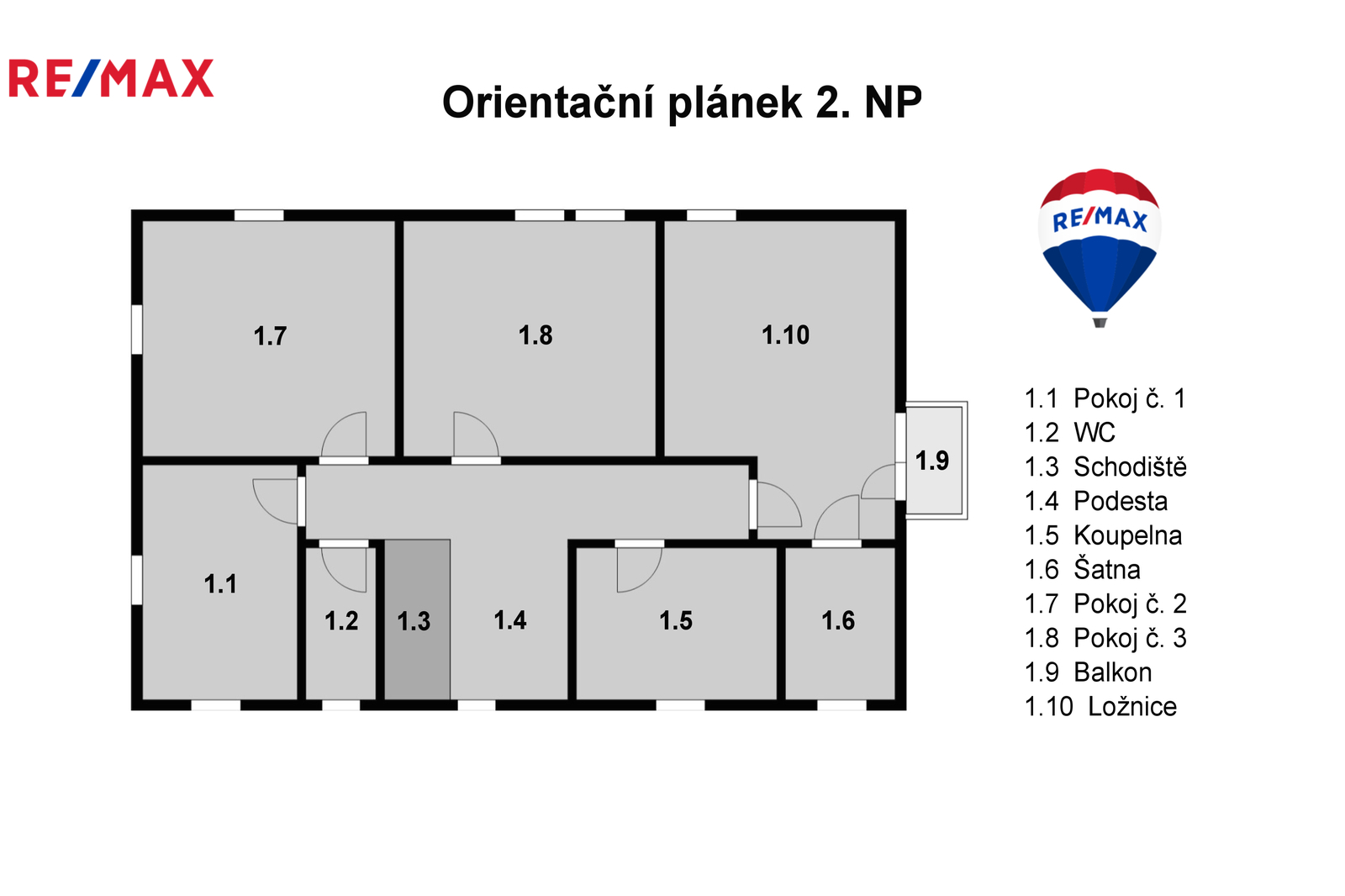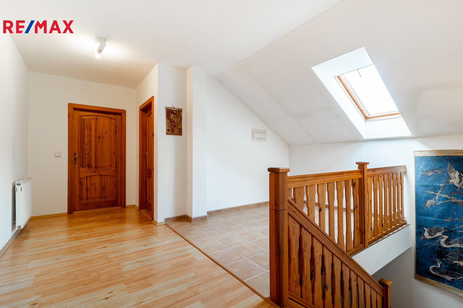 V horním patře jsou další tři velké pokoje a ložnice s balkonem směřujícím do zahrady. Nejen dámy jistě ocení šatnu navazující na ložnici.