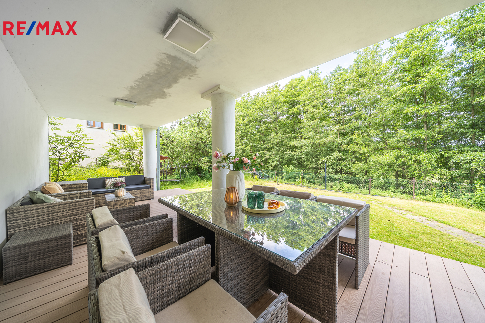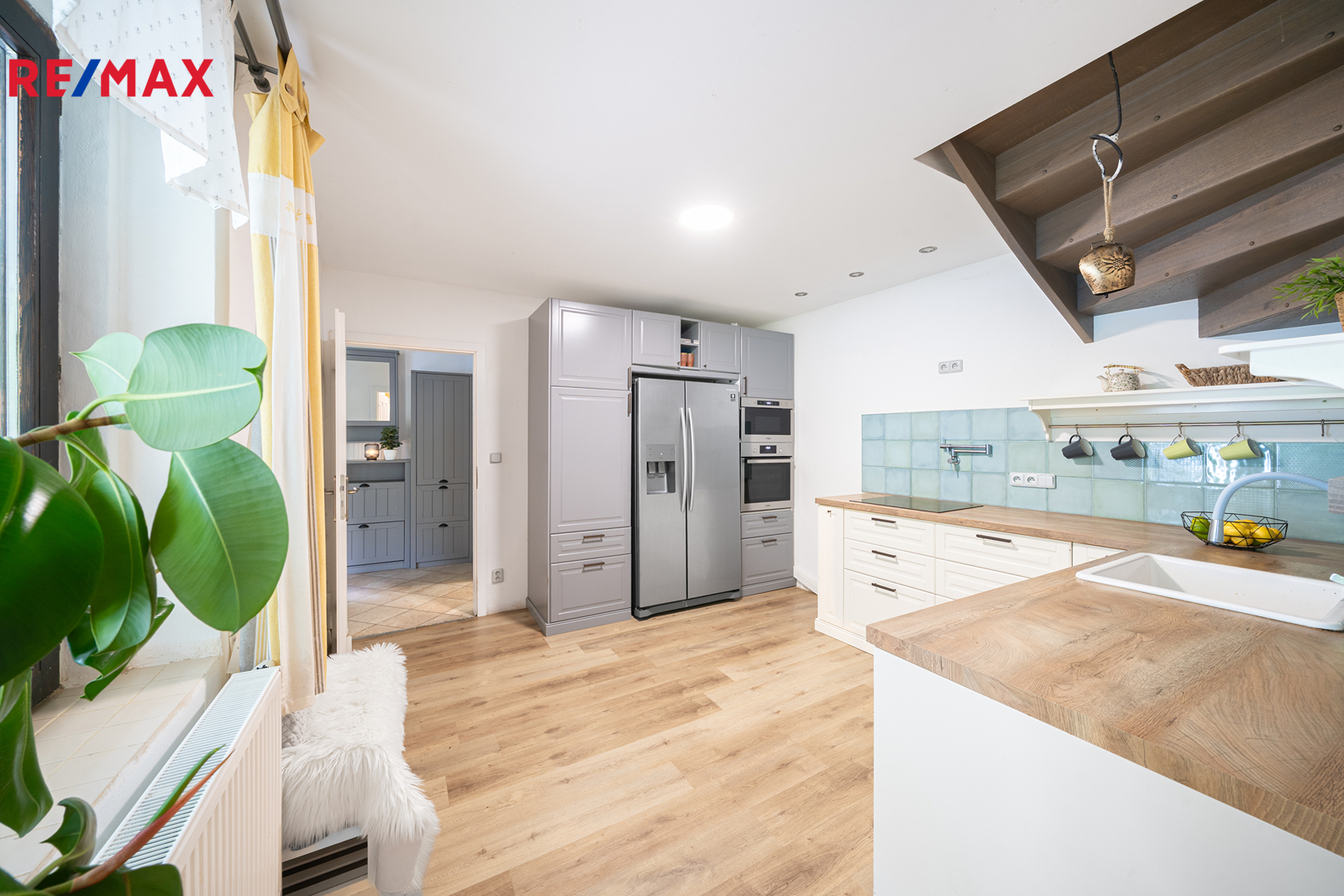 - Kuchyň s jídelním koutem a přímým vstupem na terasu