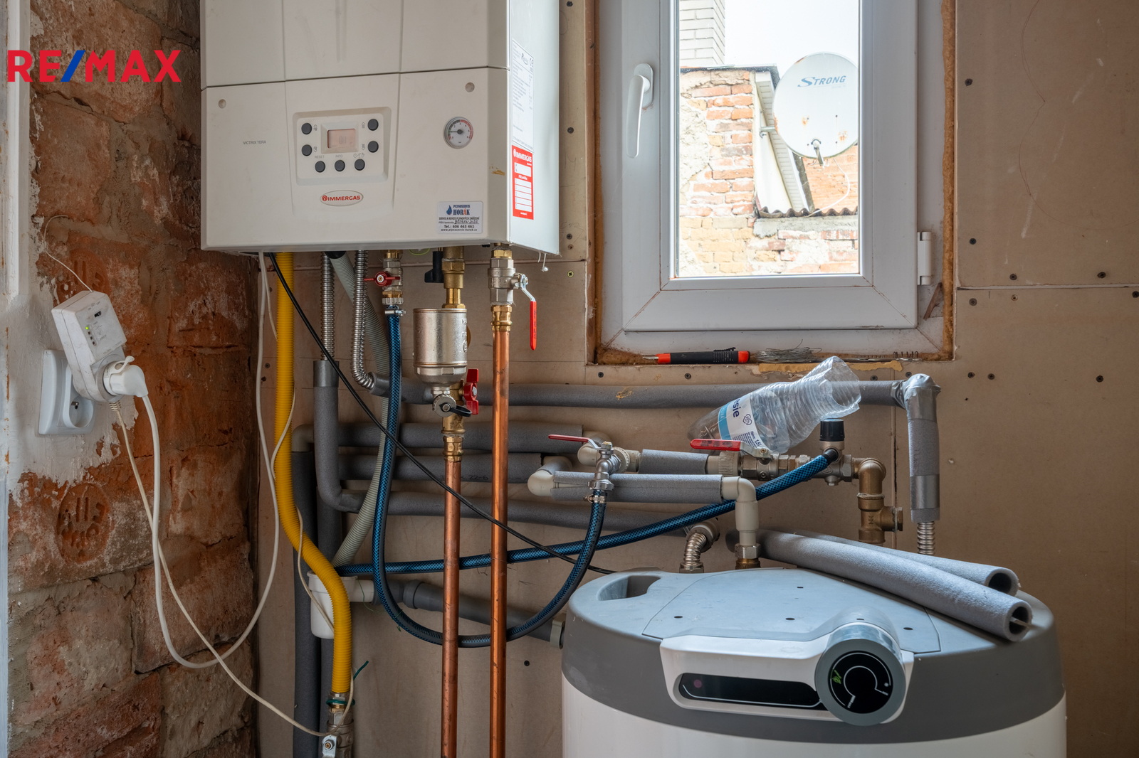 Dům je vytápěn plynovým kotlem, ohřev vody zajišťuje elektrický kotel. K dispozici je také možnost napojení kotle na tuhá paliva.