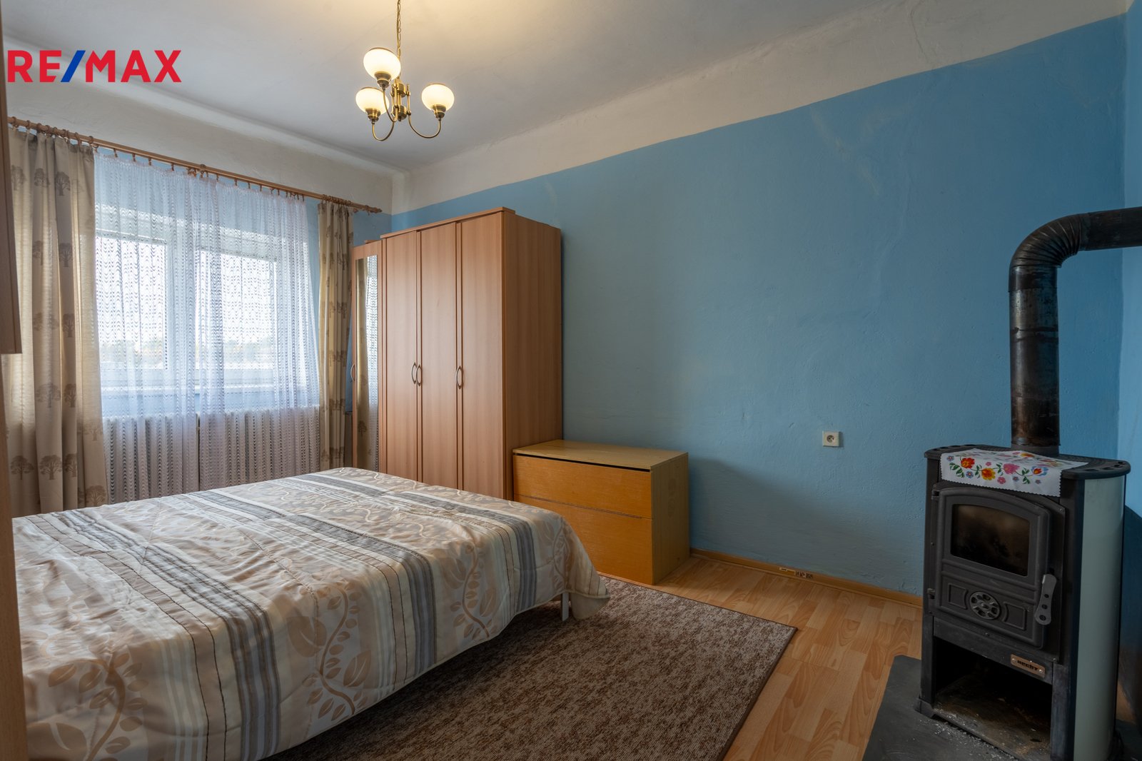 V horní části se nachází prostorná kuchyň, útulný obývací pokoj, ložnice s krbovými kamny, menší neprůchozí pokoj a další průchozí pokoj, který lze upravit podle potřeby. Koupelna je vybavena vanou, sprchovým koutem i toaletou – prostě vše, co potřebujete pro pohodlné bydlení.