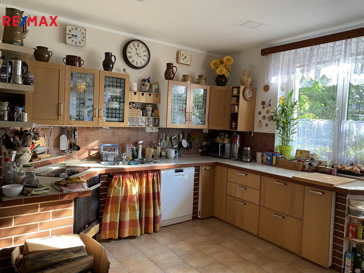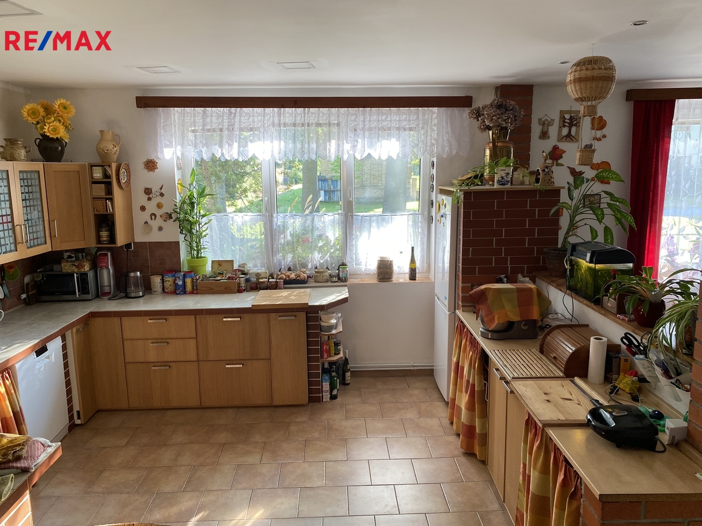 Nabízíme vám k prodeji přízemní, atypicky řešený dům přímo v centru obce Hrubý Jeseník v okrese Nymburk. Dům samotný je umístěn na přední hranici pozemku, odkud je i hlavní vstup do chodby, ze které dvoukřídlými dveřmi vstoupíte do haly se vstupy do ostatních místností a prostor domu - ložnice (18 m2), otevřené šatny, koupelny s vanou (13 m2), WC a dětského pokoje (19 m2). Na halu navazuje chodba, na jejímž konci je výstup do verandy - zimní zahrady (22 m2) a následuje otevřený prostor rozdělený na obývák s jídelním koutem (33 m2) a barem z lícových cihel, který odděluje vlastní kuchyň (20 m2) s litinovými krbovými kamny s varnou deskou a elektrickým sporákem s troubou. Za kuchyní navazuje další obytná část, nyní sloužící jako vejminek. Jedná se o pokojík 15 m2, ze kterého malou šatnou procházíte do koupelny s WC a sprchovým koutem. Ze vstupní haly je rovněž výstup do tří, na sobě navazujících hospodářských (špajzu) a technických místností (sklad a kotelna), kde z prostředního skladu vedou nové dřevěné schody na prostornou půdu, kde by byla možnost vybudování dalšího obytného prostoru. Dům je mimo sezónu vytápěn litinovými kamny a kotlem na dřevo, ohřev vody zajišťují elektrické bojlery.