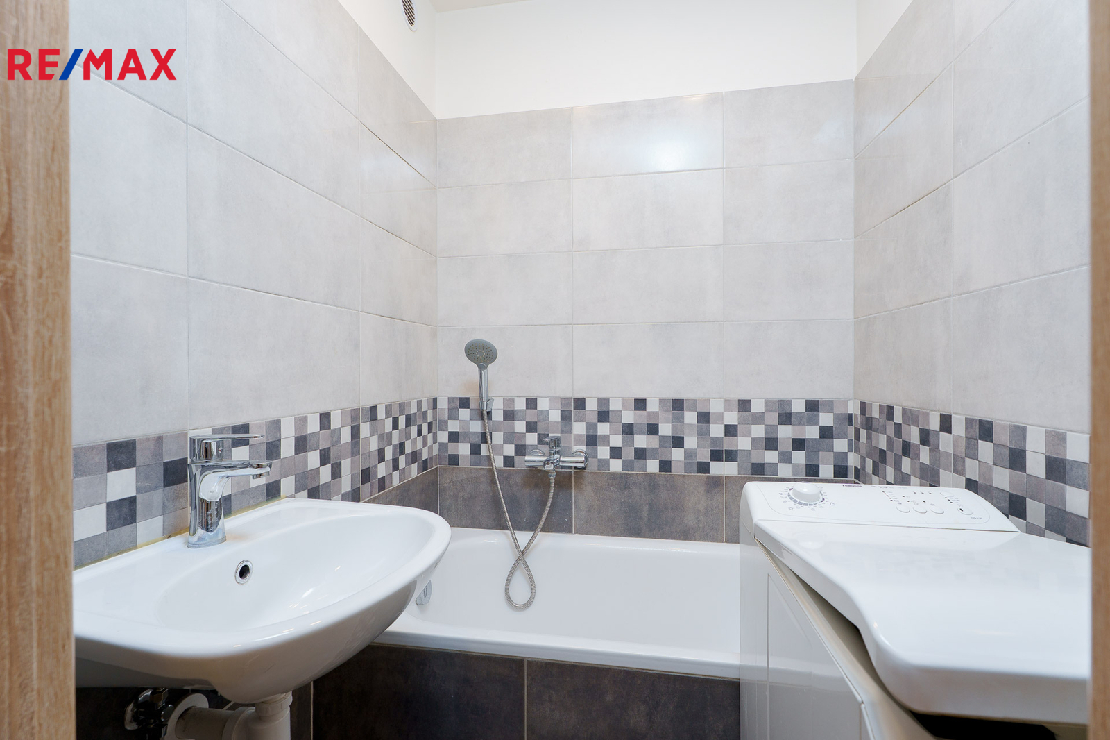 Byt je částečně vybaven - kuchyň je vybavena spotřebiči (myčka 70 cm, elektrická trouba, plynový sporák), v koupelně je umístěna pračka, v obývací místnosti sedací souprava.