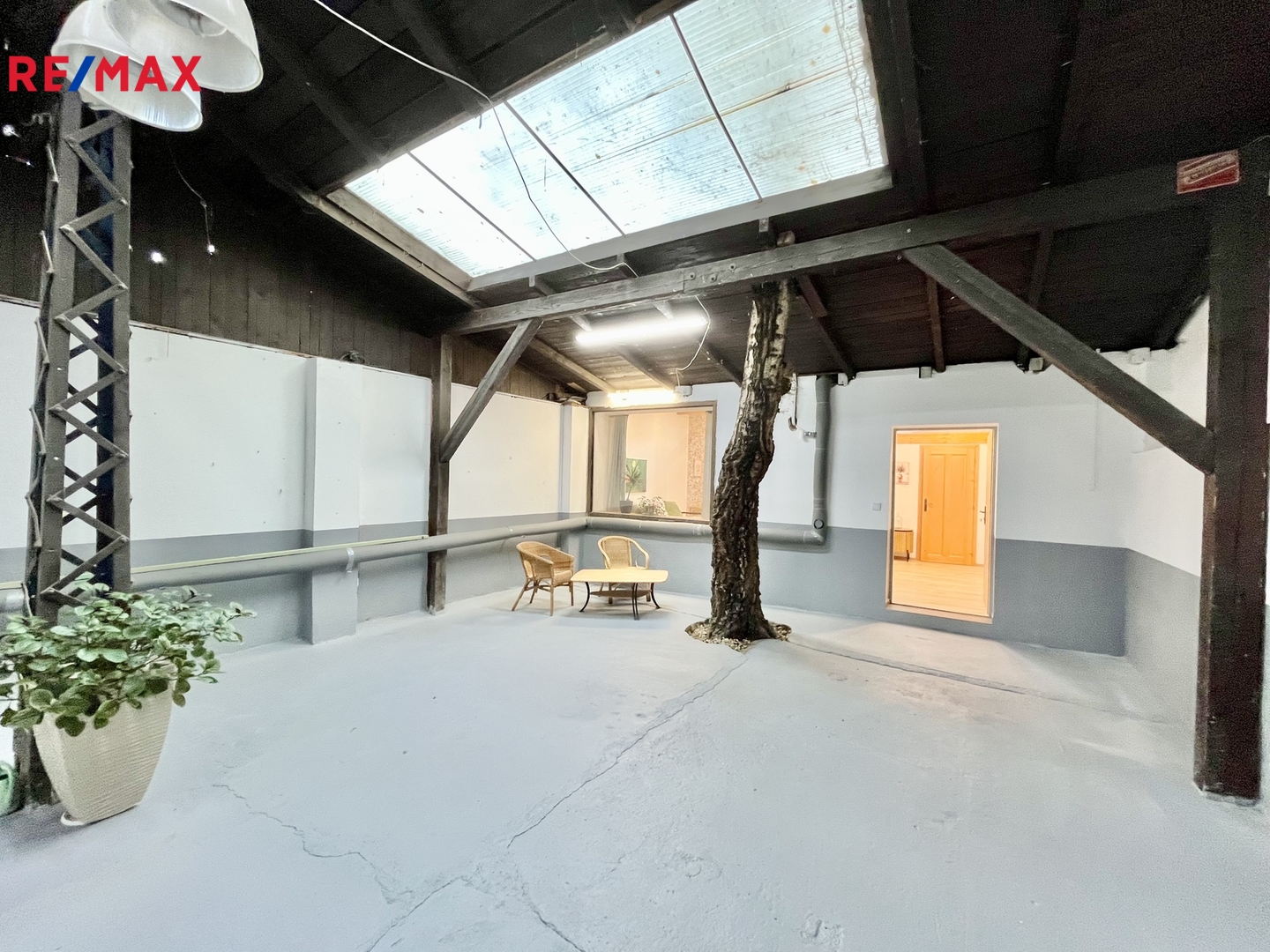 Pronájem obchodních prostor s bytem 1KK, v přízemí cihlového domu, v blízkosti metra Kobylisy.