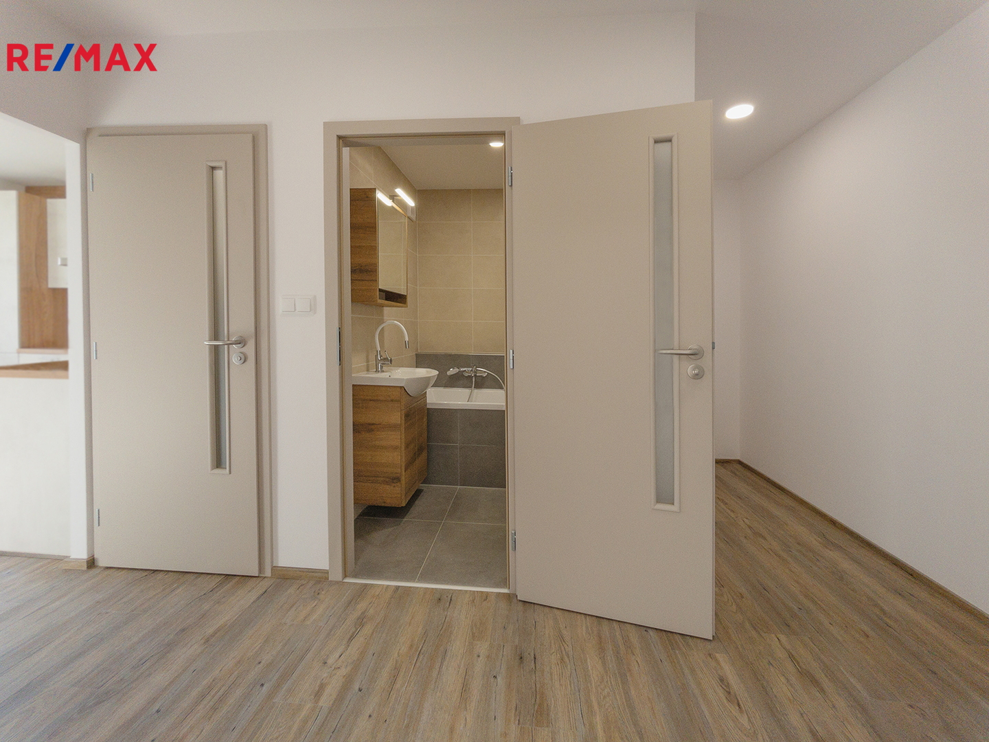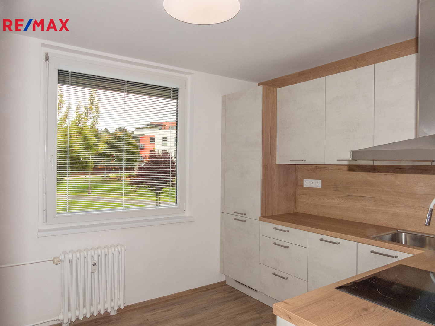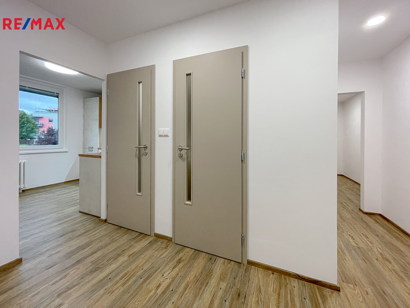 Byt prošel kompletní rekonstrukcí – nová kuchyňská linka (včetně spotřebičů), koupelna a WC, elektroinstalace (měď), v celém bytě sjednocené podlahy (nivelace + rigidní vinyl), interiérové dveře s obložkovými zárubněmi, vstupní bezpečnostní dveře, podhledy, světla na dálkové ovládání se stmívačem a změnou barevné teploty, žaluzie a sítě proti hmyzu, na JV stranu též venkovní žaluzie.