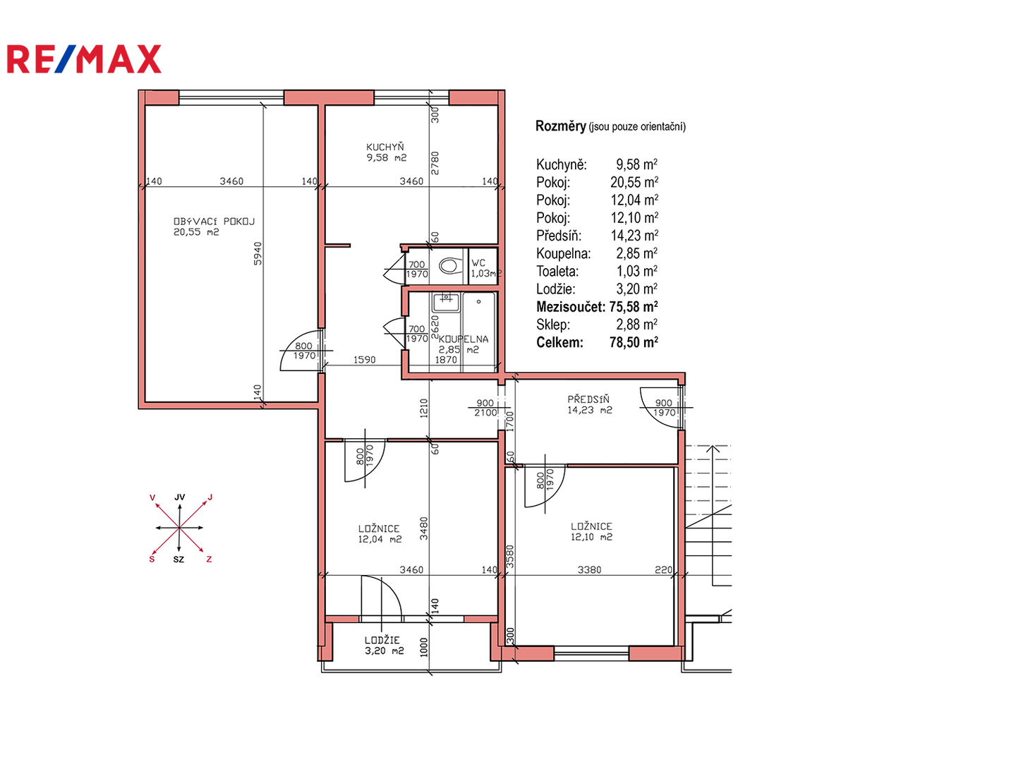 (rozměry jednotlivých místností jsou uvedeny v přiloženém plánku.)