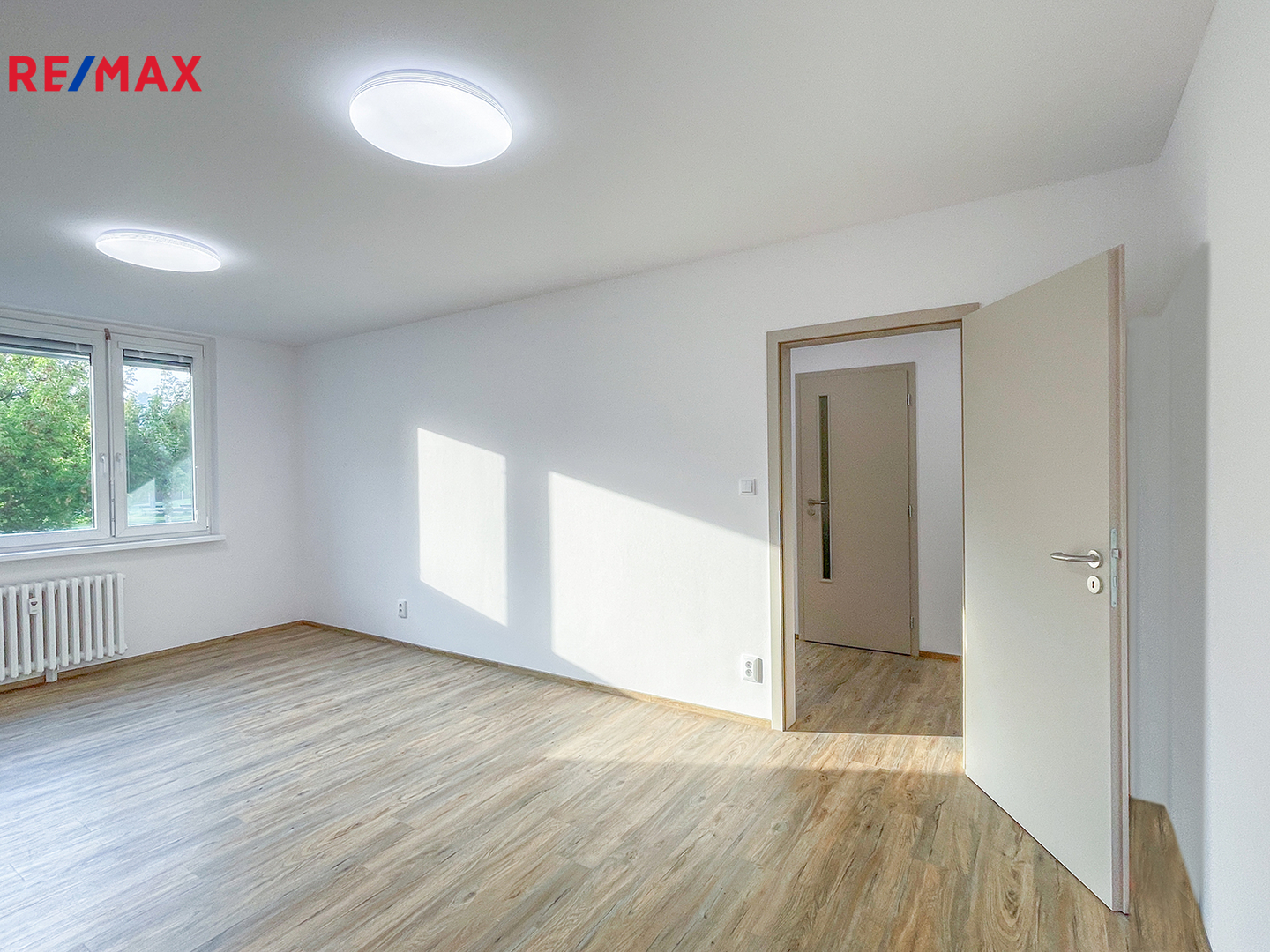 Byt má plastová okna orientovaná na dvě světové strany (JV a SZ), díky čemuž je interiér příjemně prosvětlený po celý den.