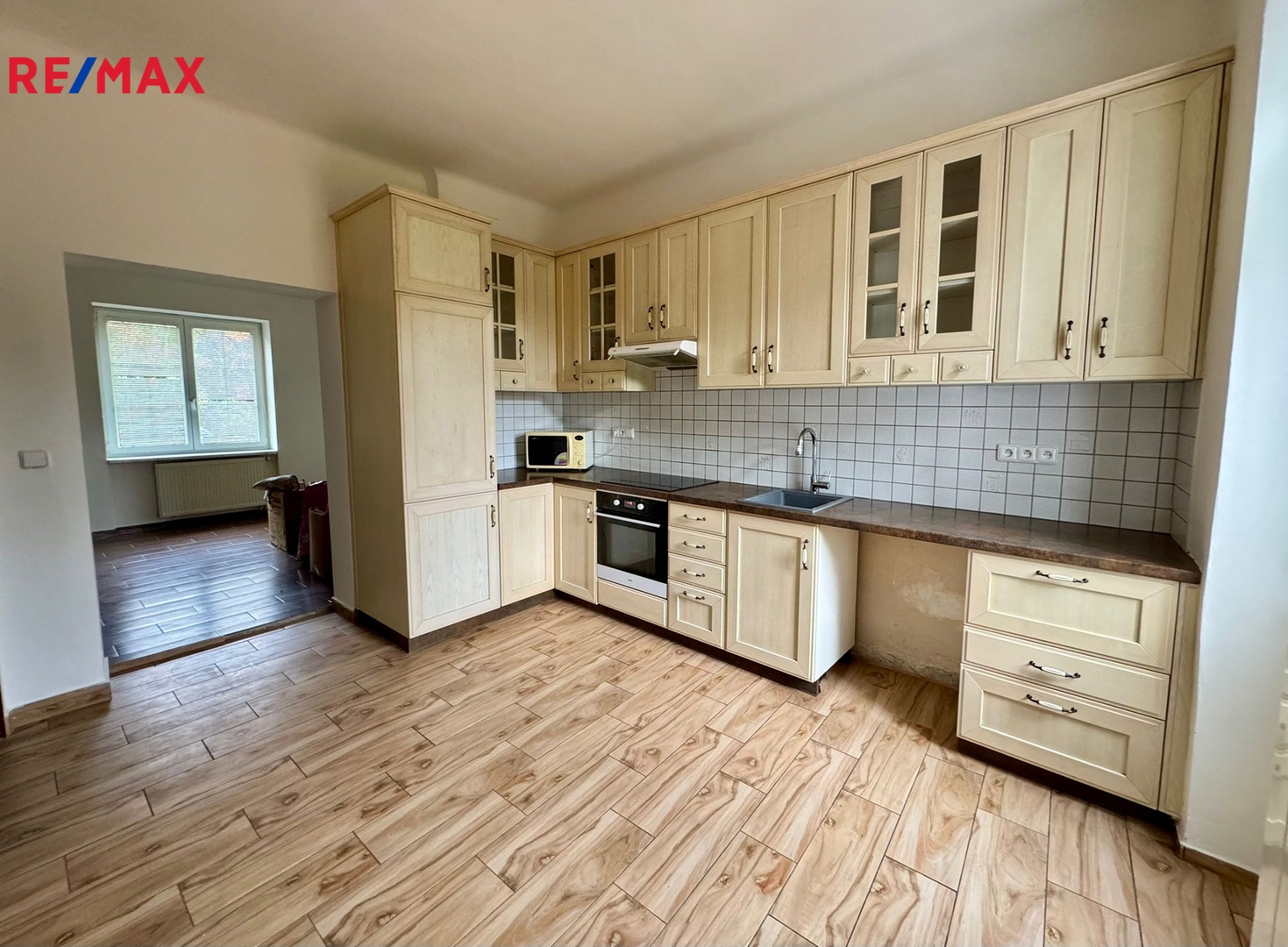 - kuchyně orientovaná do dvora a zahrady& spíž, součástí je kuchyňská linka s vestavnými spotřebiči