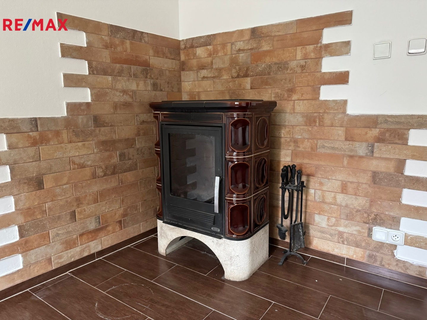 - obývací pokoj orientovaný do předzahrádky s kachlovými kamny