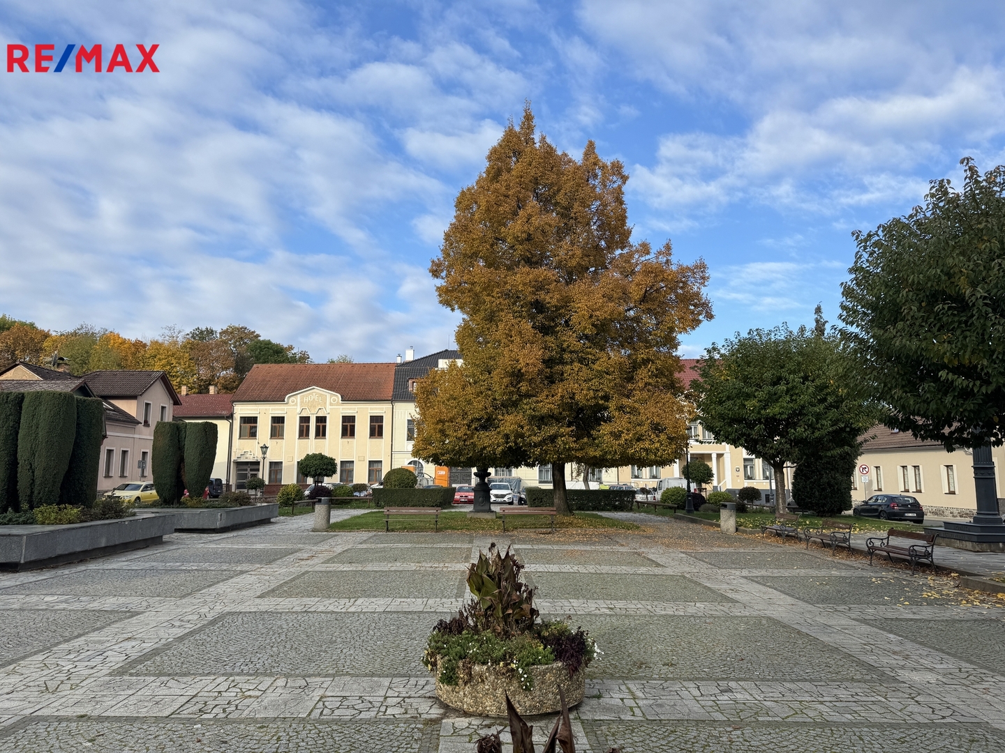 Komárov se nachází v okrese Beroun, přibližně 6 km od města Hořovice, s výbornou dostupností na dálnici D5 (Praha – Plzeň). Město nabízí kompletní občanskou vybavenost a stabilní zázemí pro podnikání. Prostor je díky své poloze na náměstí velmi dobře viditelný a přístupný.