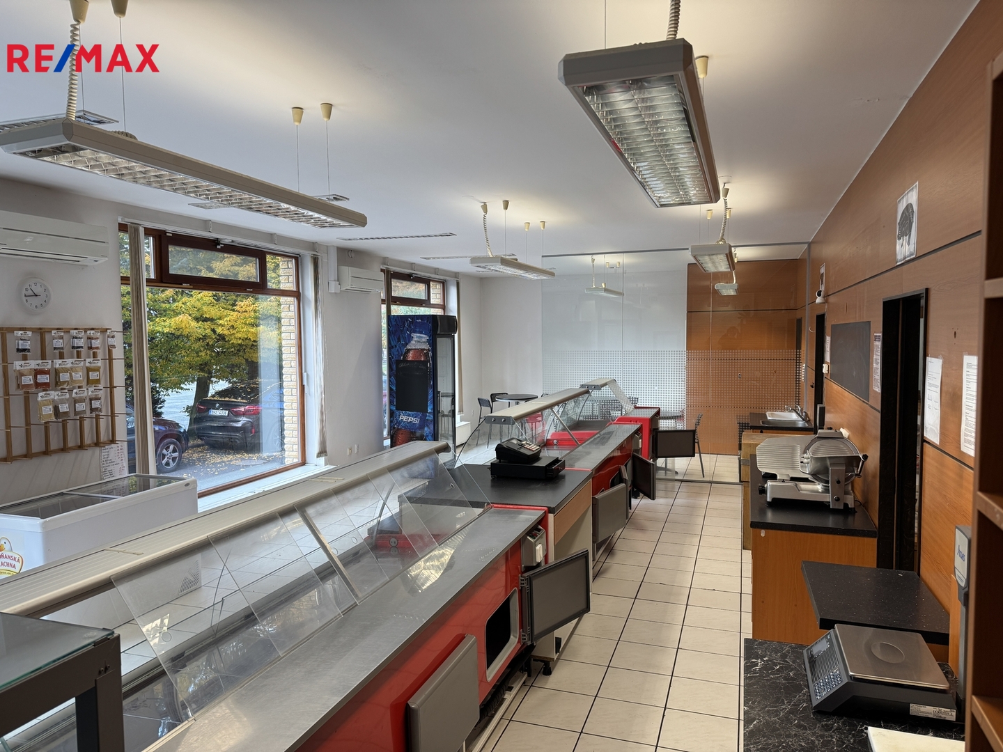 Nabízíme k pronájmu komerční prostor o užitné ploše 145,72 m² v centru Komárova, přímo na Náměstí Míru. Prostor má dlouholetou historii využití – dříve zde fungovala pobočka České spořitelny a naposledy řeznictví, které zde bylo v provozu až do nedávna. Prostor je stále plně vybaven pro potravinářský provoz, včetně chladících vitrín o celkové ploše cca 5 m² a chladícího boxu o velikosti 4,38 m². Pokud by nový nájemce plánoval jiné využití (např. kancelář, prodejnu nebo provozovnu služeb), je možné prostor upravit dle jeho požadavků.