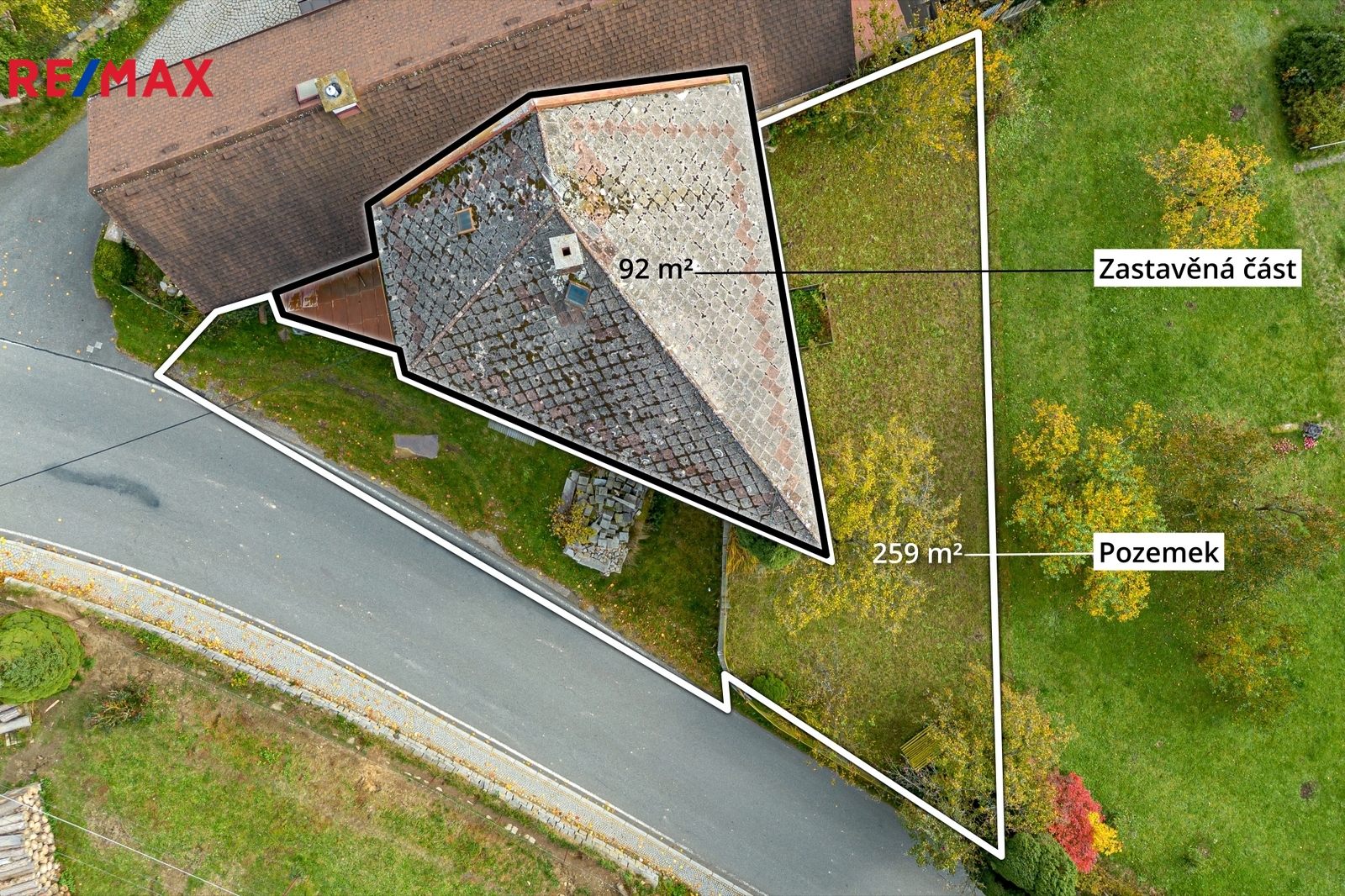 Pozemek celkem 351m² (zastavěná plocha 92 m², zahrada 154 m², ostatní plocha před domem 105 m²)