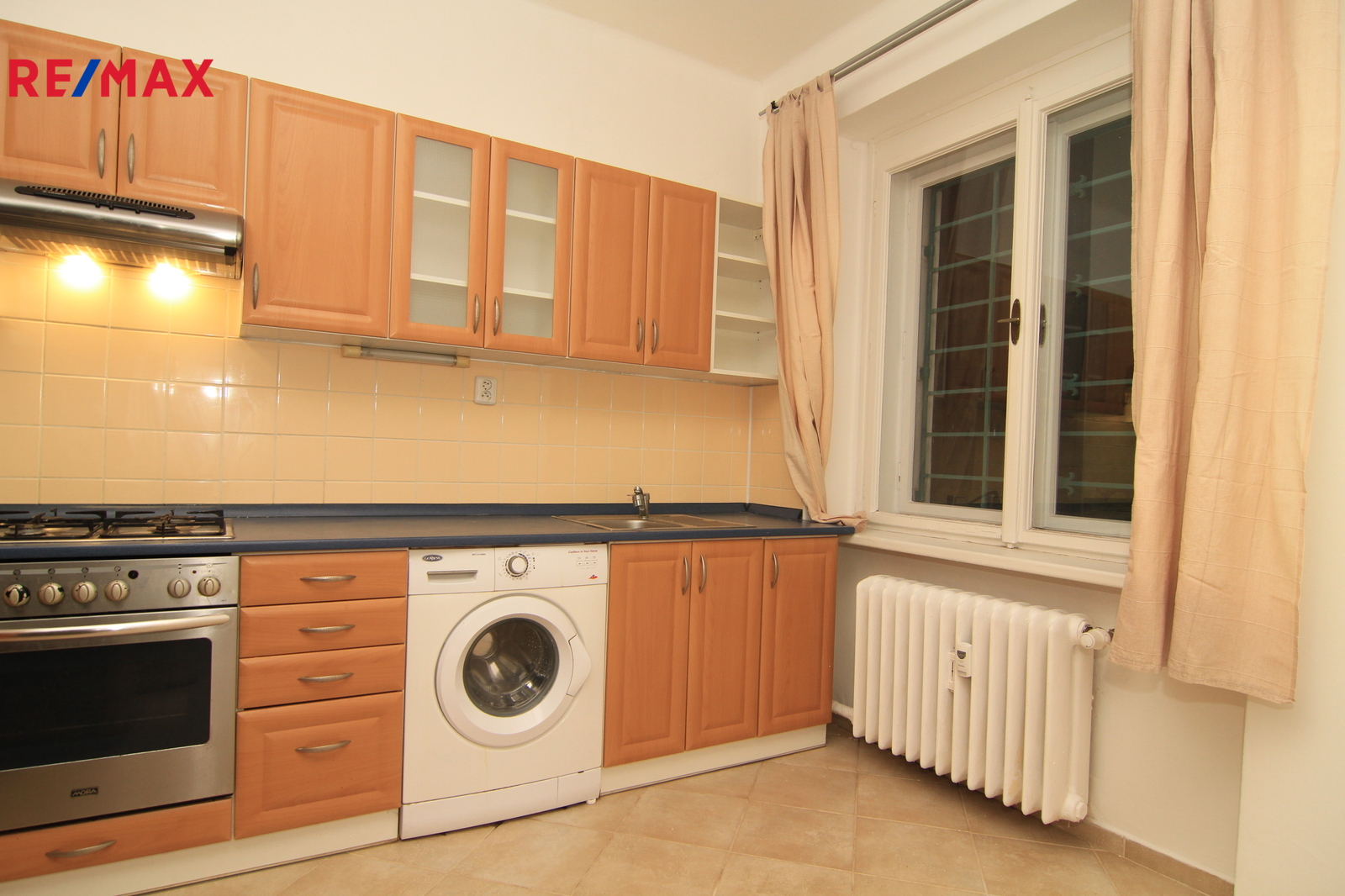 • Kuchyň je vybavena plynovým sporákem, elektrickou troubou, pračkou a starší lednicí.