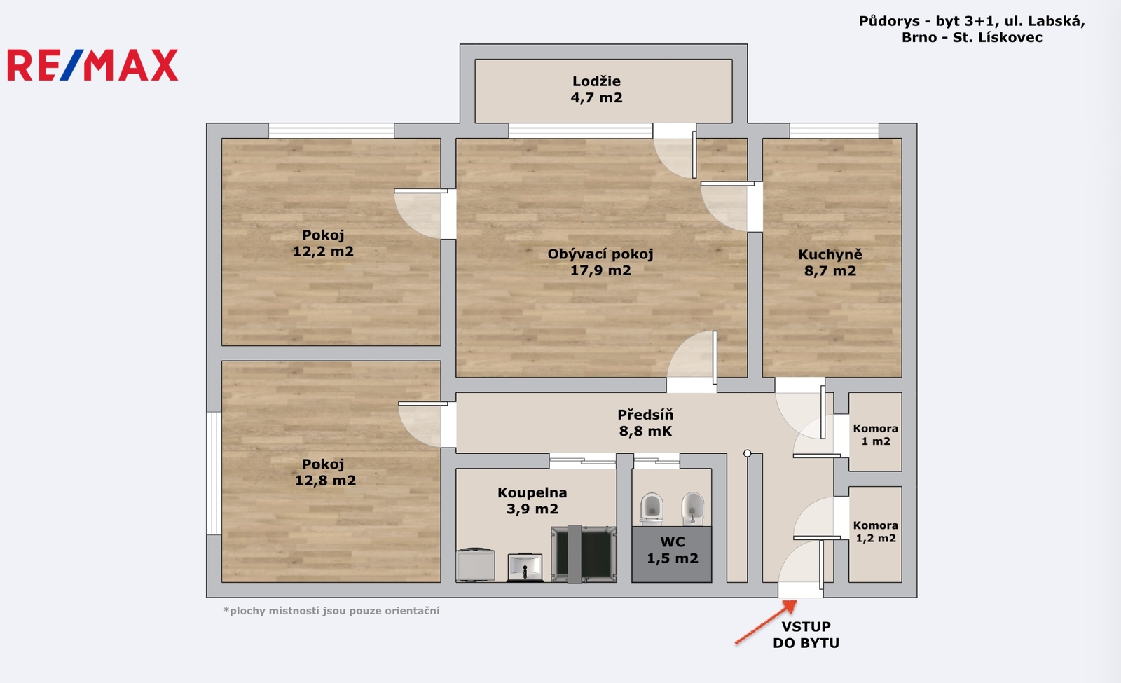 V zastoupení majitele Vám ke koupi nabízíme byt 3+1 v žádané lokalitě Brno – Starý Lískovec na ulici Labská.
