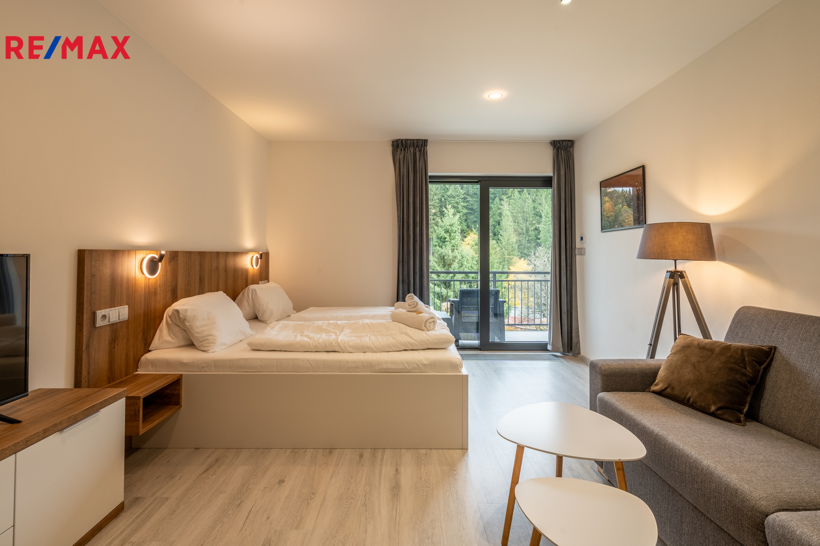Apartmán je připraven k okamžitému užívání – prodává se plně vybavený. Můžete jej využívat pro vlastní rekreaci, celoroční bydlení, nebo jako investiční příležitost. V domě je možnost využití služeb správy a obsazování apartmánů.