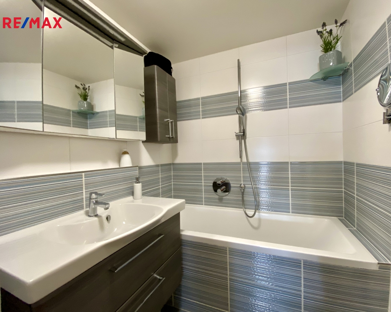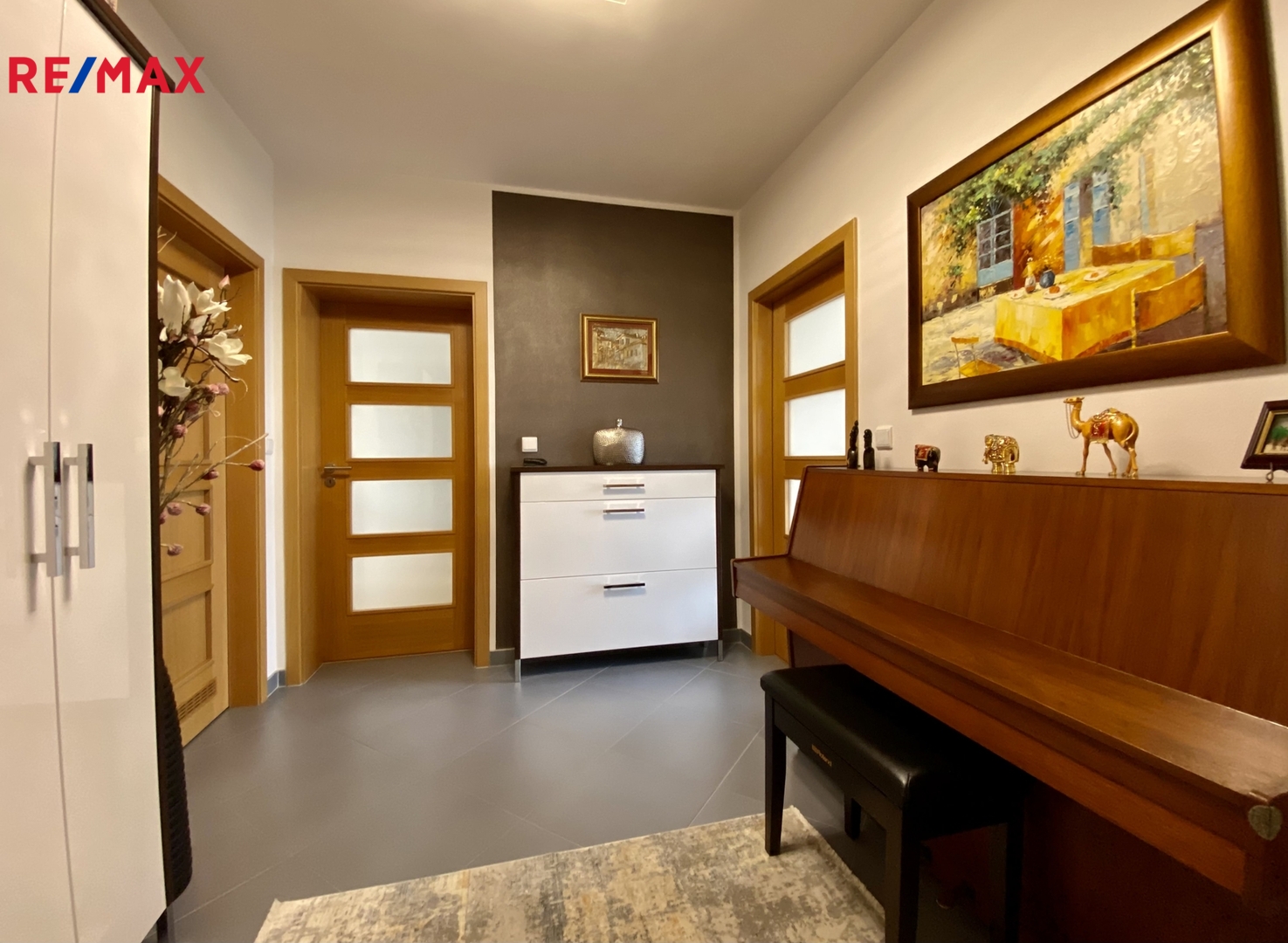 Nemovitost disponuje vstupní předsíní (o výměře 8 m2), obývacím pokojem propojeným s krásnou světlou prostornou kuchyní a jídelnou (celkem o výměre 37 m2), ložnicí s vlastní koupelnou s WC (celkem o výměře 18 m2), ložnicí se šatnou (celkem o výměře 16 m2), ložnicí s vestavěnou skříní (o výměře 8,4m2), další koupelnou a samostatným WC s umyvadlem a bidetovou sprchou.