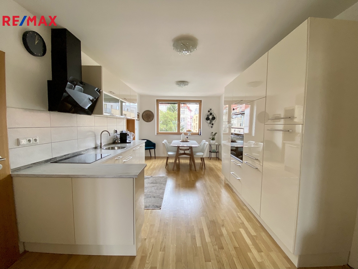 Byt byl nově postaven v roce 2011 spolu současně s kompletní rekonstrukcí celého domu. Podlahy jsou dřevěné + dlažba, na dřevěných oknech jsou vnitřní žaluzie a u všech ložnic jsou instalované předokenní elektricky ovládané rolety. Byt je vybaven novou kvalitní kuchyňskou linkou s vestavěnými spotřebiči (elektrickou a mikrovlnnou troubou, indukční varnou deskou, digestoří, myčkou, dvěma ledničkami a mrazákem), na lodžii je instalovaná markýza, vstupní dveře jsou bezpečnostní.
