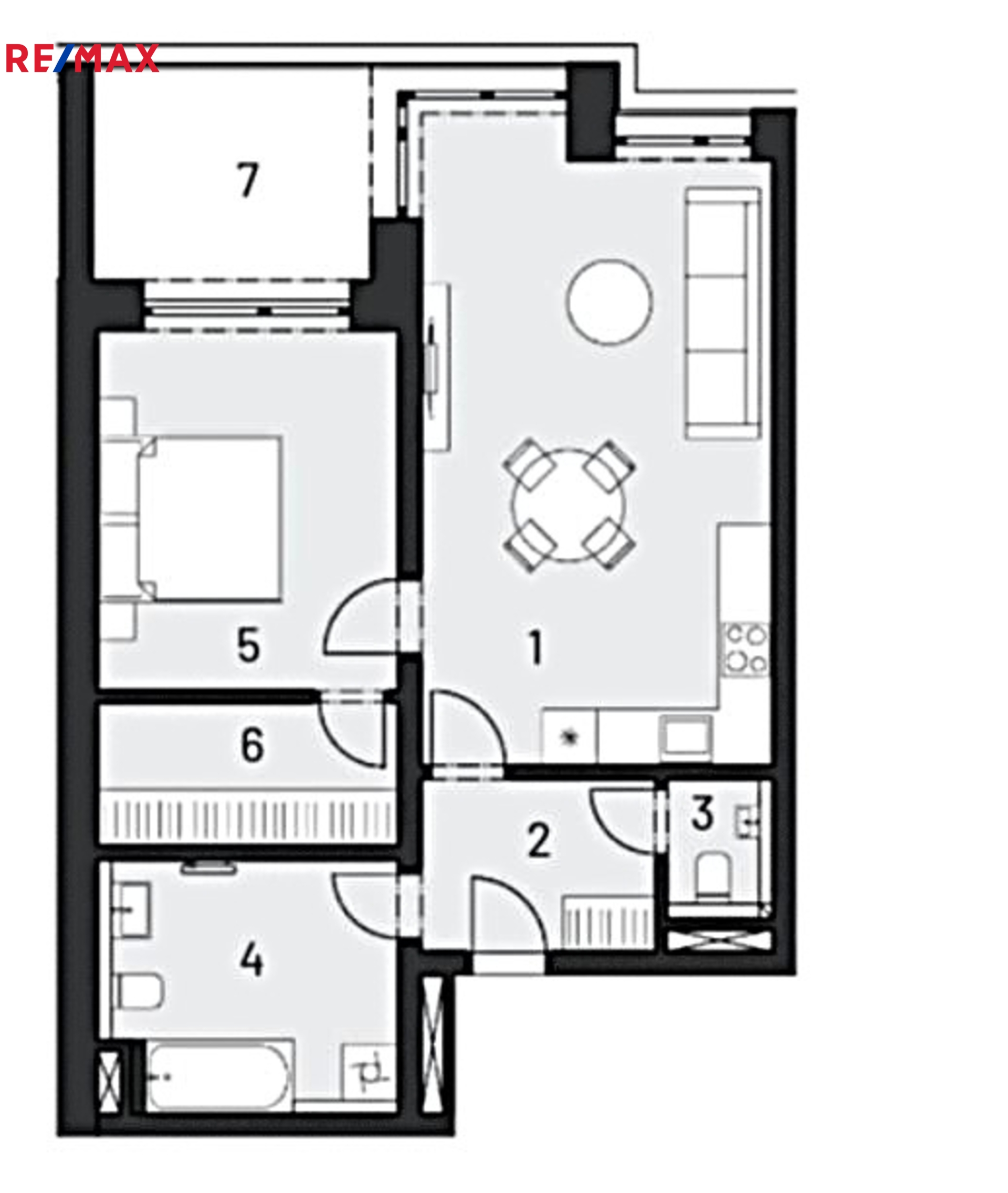 1x ložnice ( 13m2 ) se vstupem na lodžii ( 8m2 ) + je součástí navazující samostatná šatna ( 5m2 )