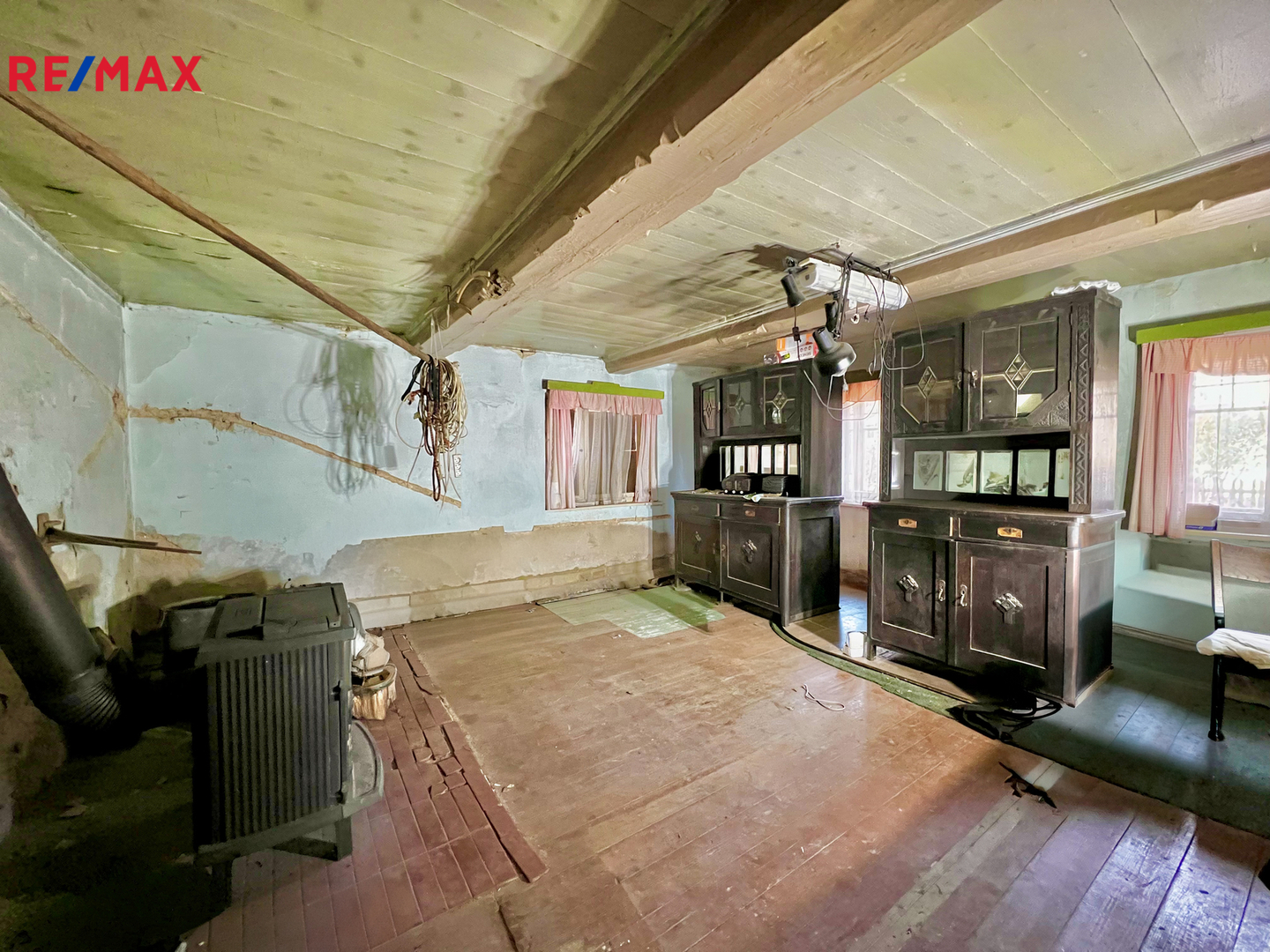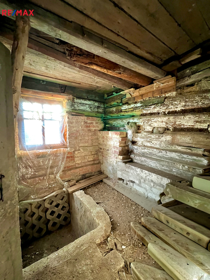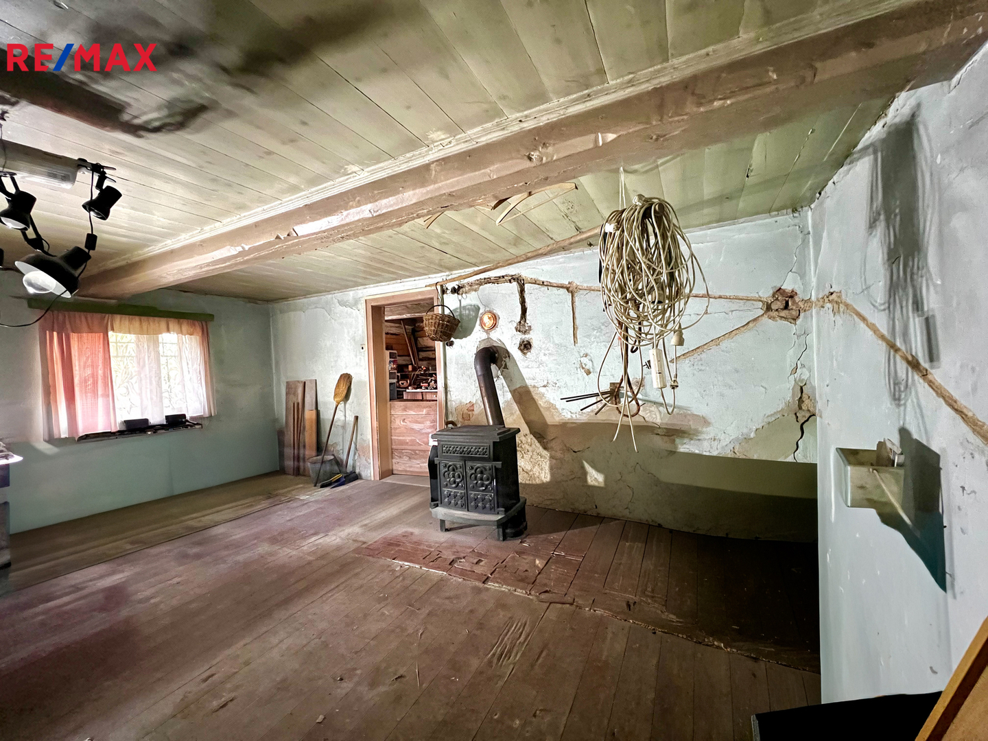 Přízemí: V současné době zde naleznete jednu obytnou místnost. Zbytek přízemí tvoří bývalé hospodářské místnosti, které poskytují dostatek prostoru pro rozšíření obytné plochy a vytvoření komfortního zázemí.