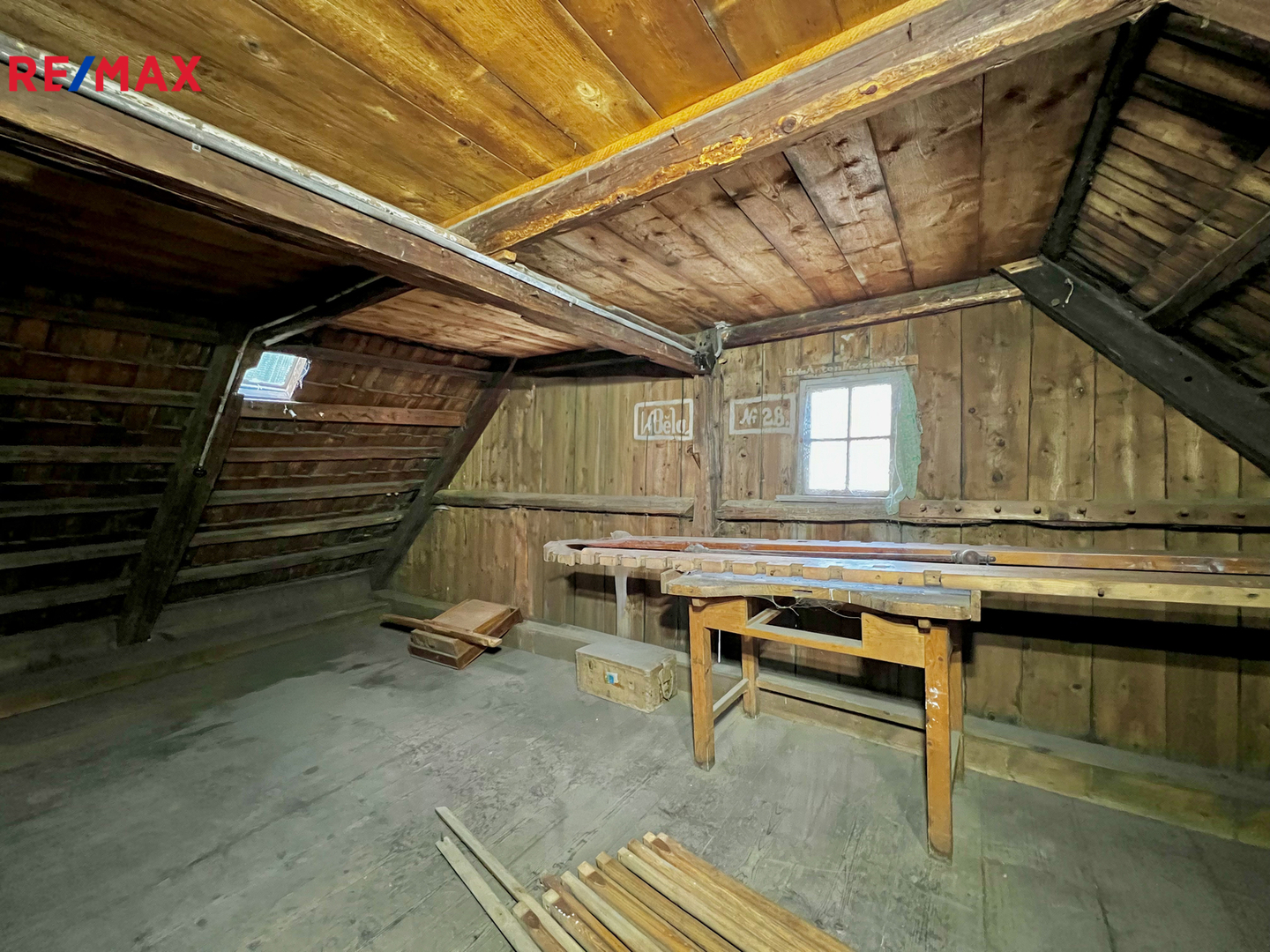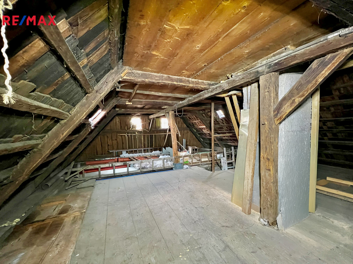 Půdní prostor: V patře se nachází prostorná půda, která nabízí potenciál pro vestavbu dalších místností, čímž se z chalupy stane plnohodnotný rodinný dům.